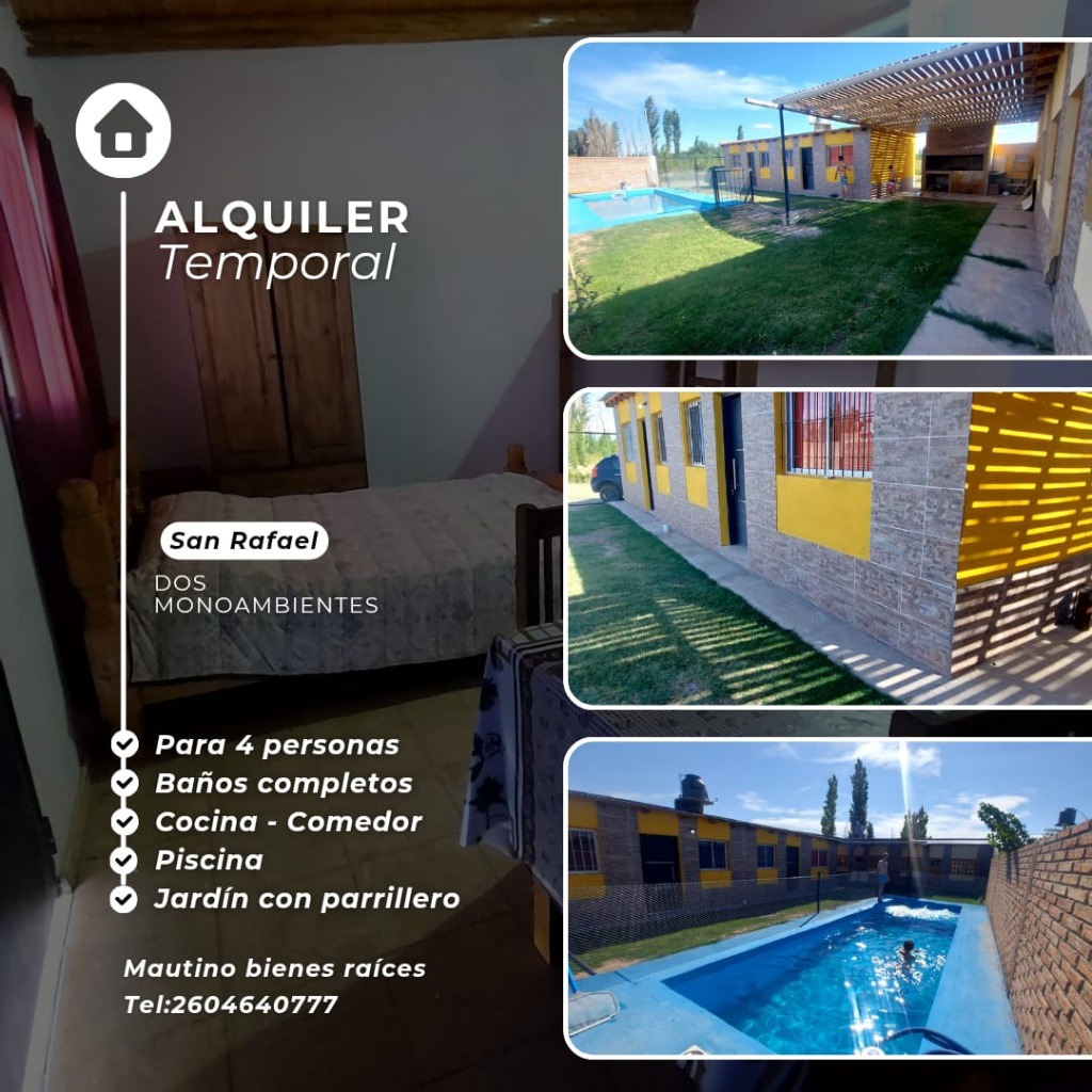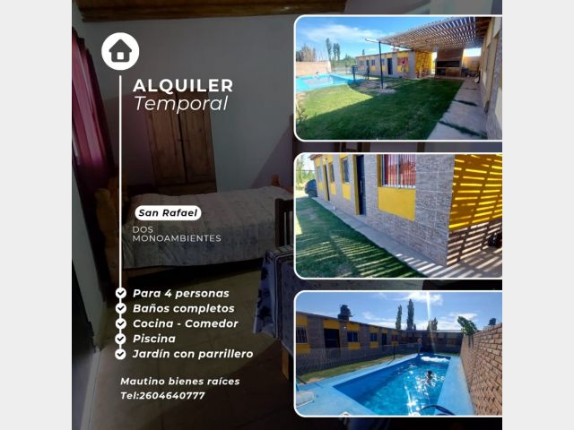 #4244265 ALQUILER TEMPORAL DE 2 MONOAMBIENTES CON PISCINA PRIVADA, CON JARDIN. EQUIPADO PARA 4 PERSONAS