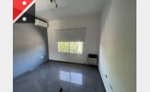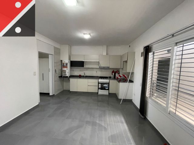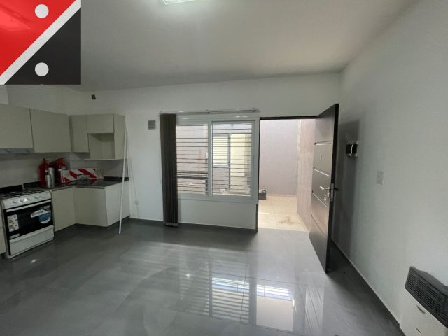 El departamento se compone de 2 ambientes: un dormitorio, un baño y una cocina que se integra al living comedor, creando un ambiente luminoso y bien distribuido. Todas las aberturas están equipadas con cortinas de bandas verticales Blackout, garantizando privacidad y confort. Además, la propiedad dispone de servicios esenciales como agua corriente, gas natural, electricidad y desagüe cloacal, en un entorno accesible y con buena forestación. La orientación sur del inmueble permite disfrutar de una excelente iluminación natural durante todo el día, mientras que la disposición al frente brinda vistas agradables.