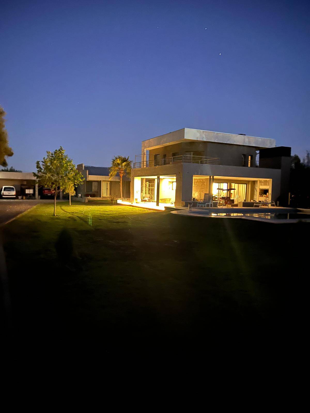 La propiedad cuenta con una orientación oeste que garantiza luminosidad y vistas espectaculares durante el atardecer. Con una antigüedad de solo 2 años, el inmueble se extiende sobre una superficie total de 3109 m², de los cuales 609 m² son cubiertos, brindando amplios espacios tanto en su interior como en el exterior. Cuatro Aires Acondicionados, riesgo por aspersión. Sala de maquinas, ablandador de agua. Riego por aspersión. Cuatro (4) aires acondicionados.