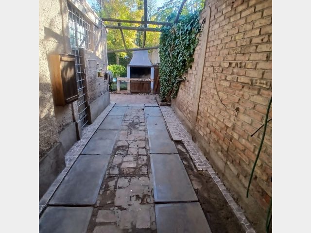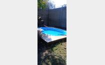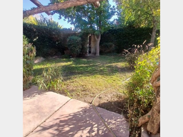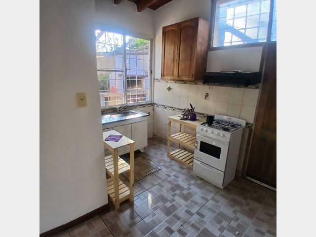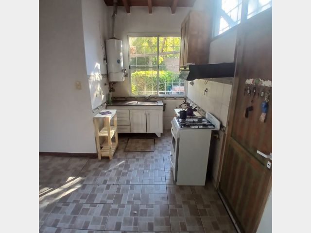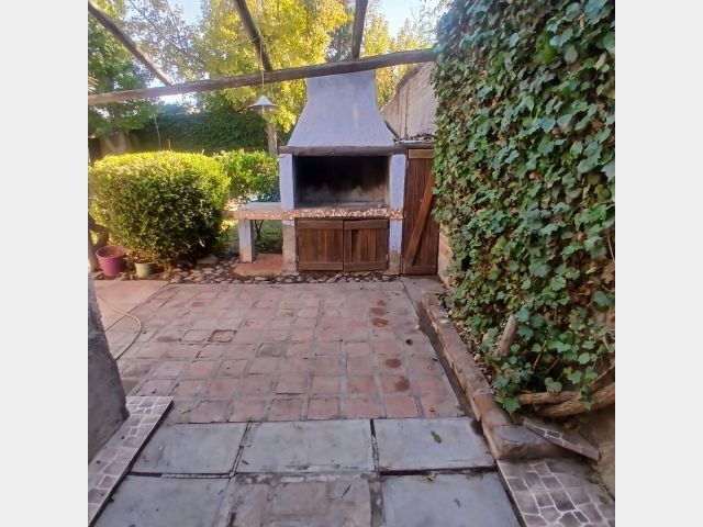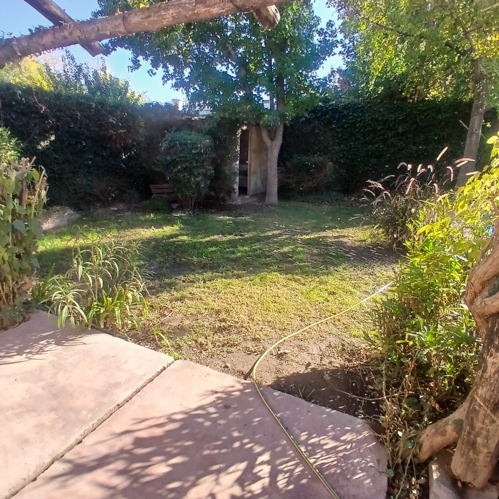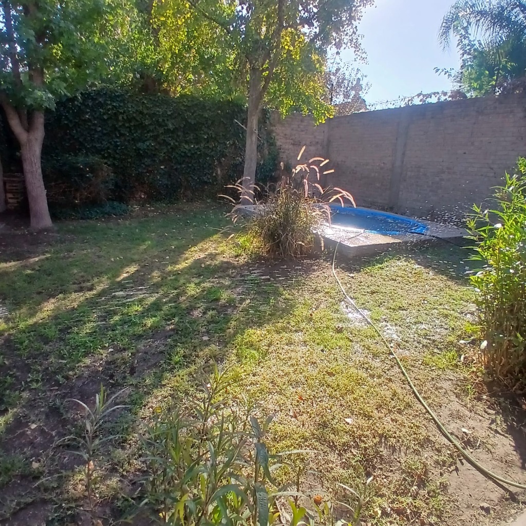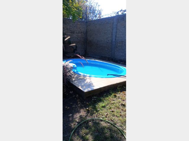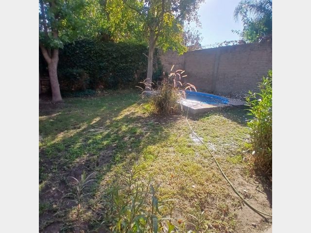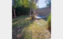 Posee dos dormitorios con placares y ventilador de techo. Sala de estar, cocina comedor de concepto abierto, aire acondicionado, un baño, cochera para dos autos tipo pasante. Hermoso patio con jardín, churrasquera, plantas, árboles y una pileta de 4x5 metros con una profundidad de 0,75 metros aproximadamente, con su bomba funcionando. Riego por aspersores. Alarma.