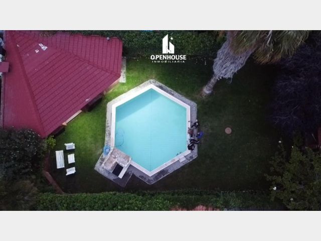 El jardín ofrece piscina, quincho con churrasquera, baño exterior y depósito, generando un espacio perfecto para reuniones y momentos de descanso.