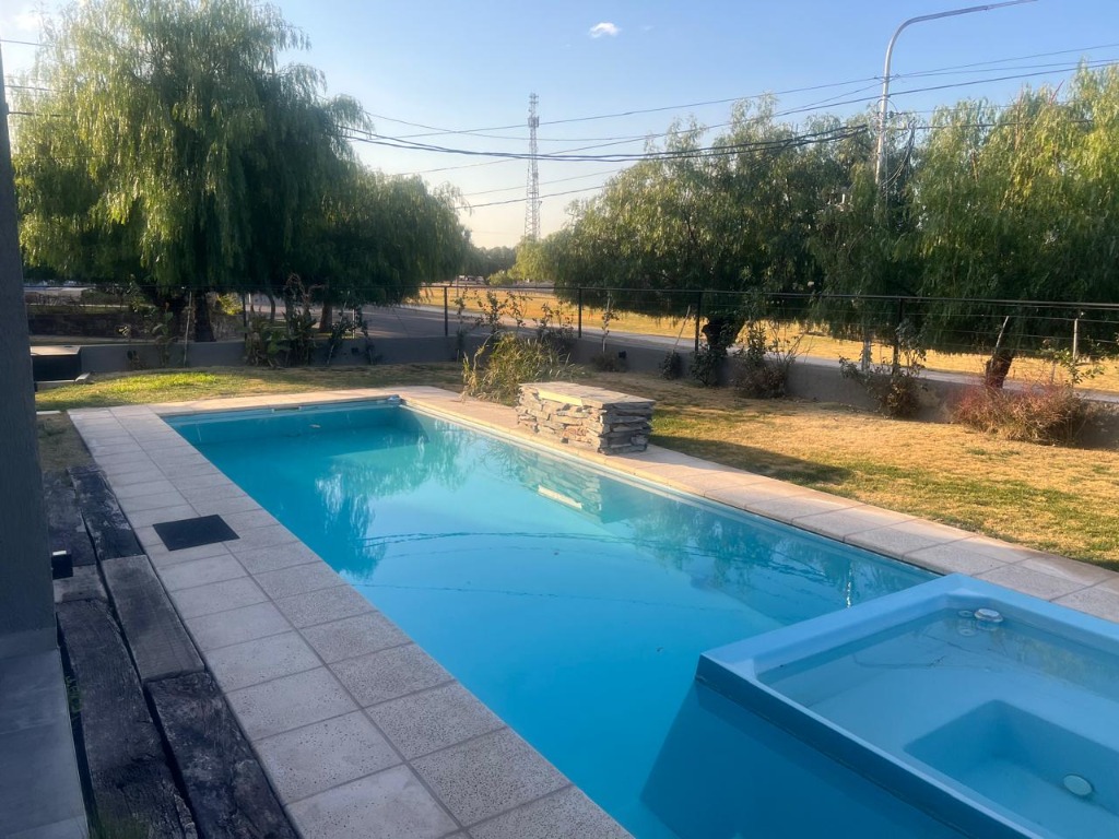 En el exterior, una hermosa galería con piscina y vistas abiertas completan esta propiedad única, ideal para disfrutar cada espacio.
