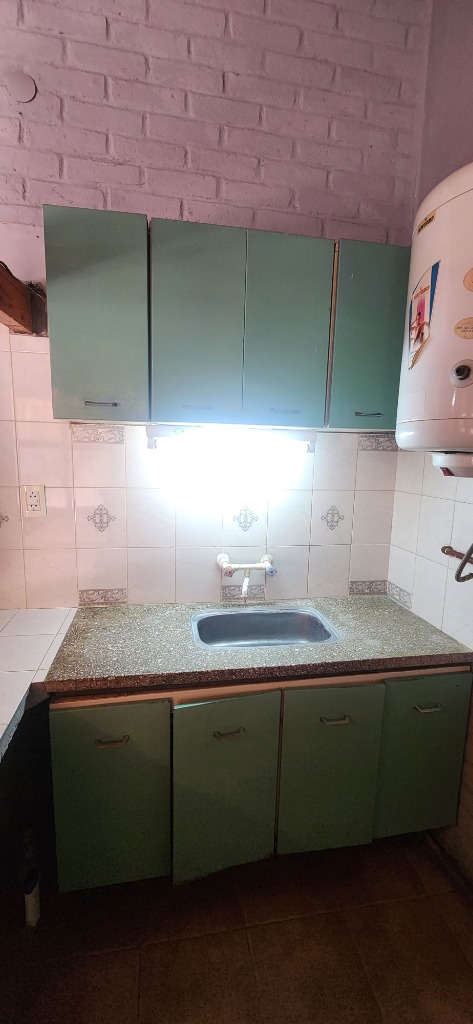B. Cocina con dos islas desayunador, alacena, Mesada Granito con bacha de cocina de acero inoxidable. Termotanque eléctrico