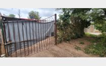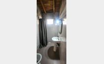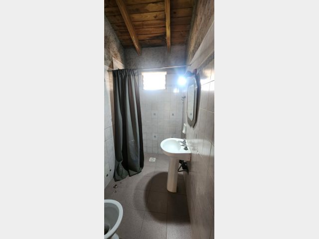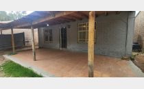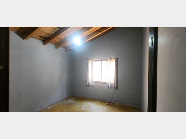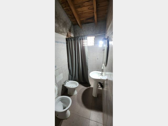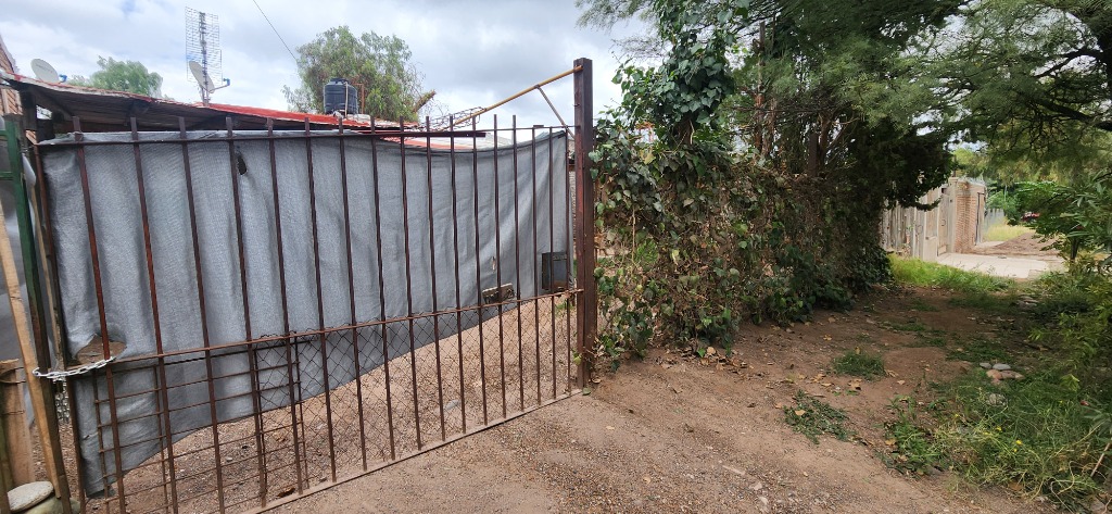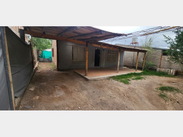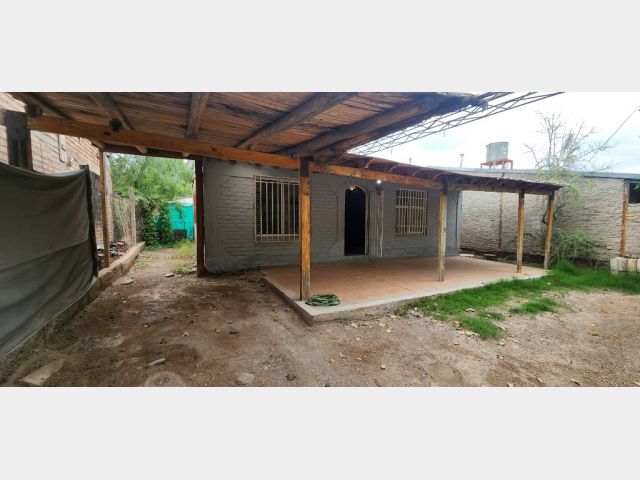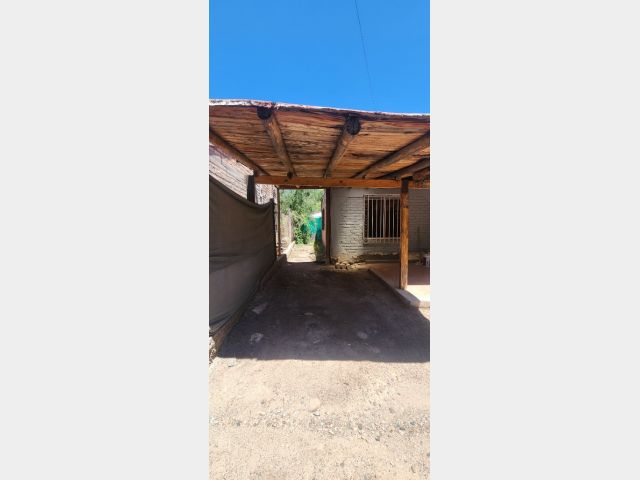 E. Sector patio con galería y cochera techada abierta. Sector vereda con piso de tierra, arbolados, medidores de luz y gas natural