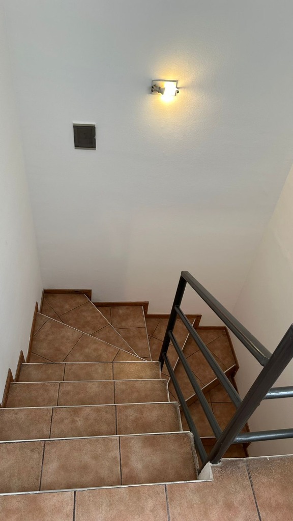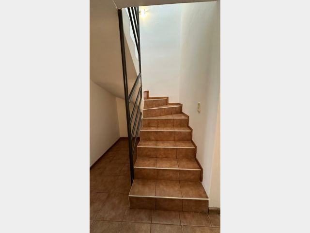 La casa se desarrolla en dos plantas y cuenta con Cochera con portón de rejas con puerta de acceso al Living Comedor. Cocina con amoblamientos de madera pintados de color blanco (alacena y bajo mesada), en la cocina se encuentra la conexión para el lavarropas. Dos dormitorios con placares, ambos dormitorios tienen puertas ventanas con rejas que dan hacia el patio. Un baño completo con todos sus artefactos y accesorios colocados. En Planta Alta un dormitorio con placard. Jardín con churrasquera.