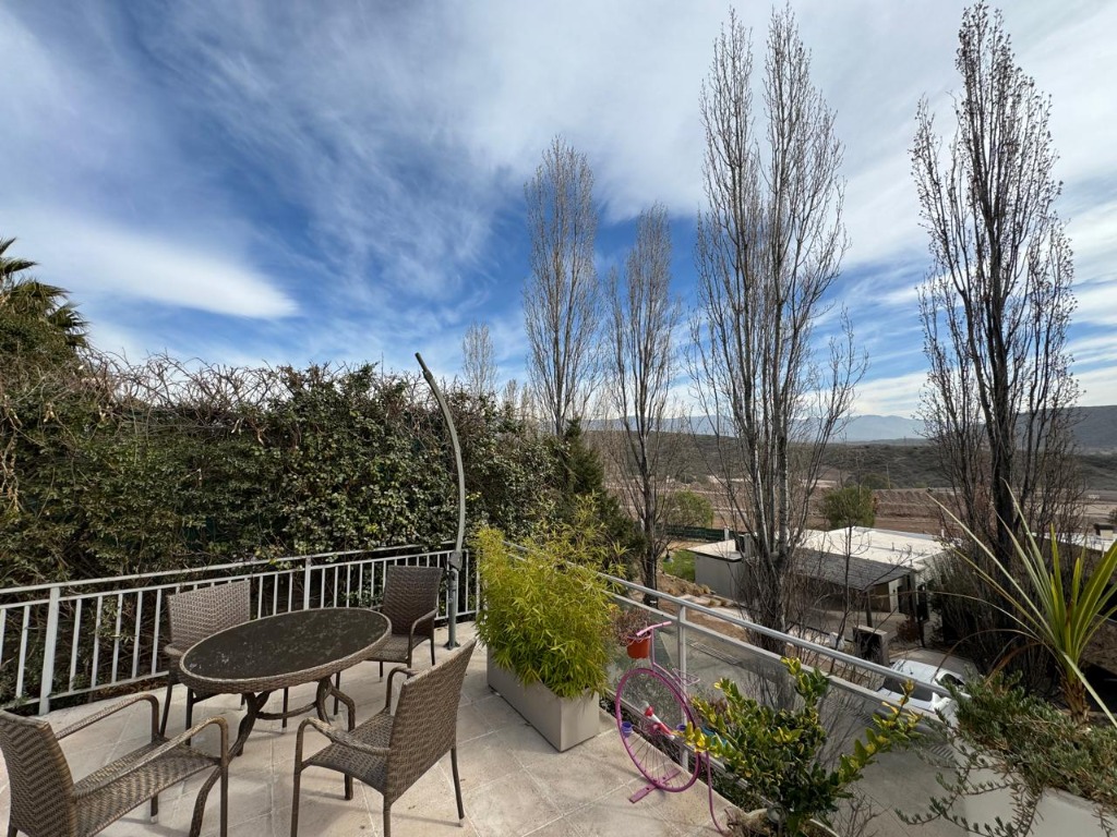 AVITAX PROPIEDADES presenta en ALQUILER hermosa casa AMOBLADA en uno de los barrios privados con mejores vistas y entorno de CHACRAS DE CORIA, "LADERAS DE CHACRAS", cuenta con doble pórtico de ingreso, uno por la nueva Ruta Panamericana y otro por calle Benito de San Martín.