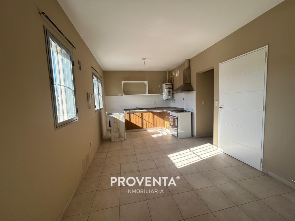 Proventa alquila departamento un dormitorio, living comedor con cocina integrada , baño y patio pequeño. El mismo se encuentra en primer piso por escalera y posee cochera.