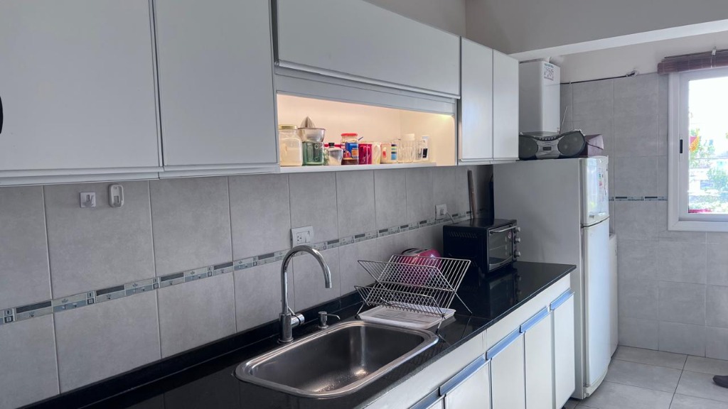 Amplia cocina independiente, ingreso de luz, totalmente equipada con caldera, mesada mármol.