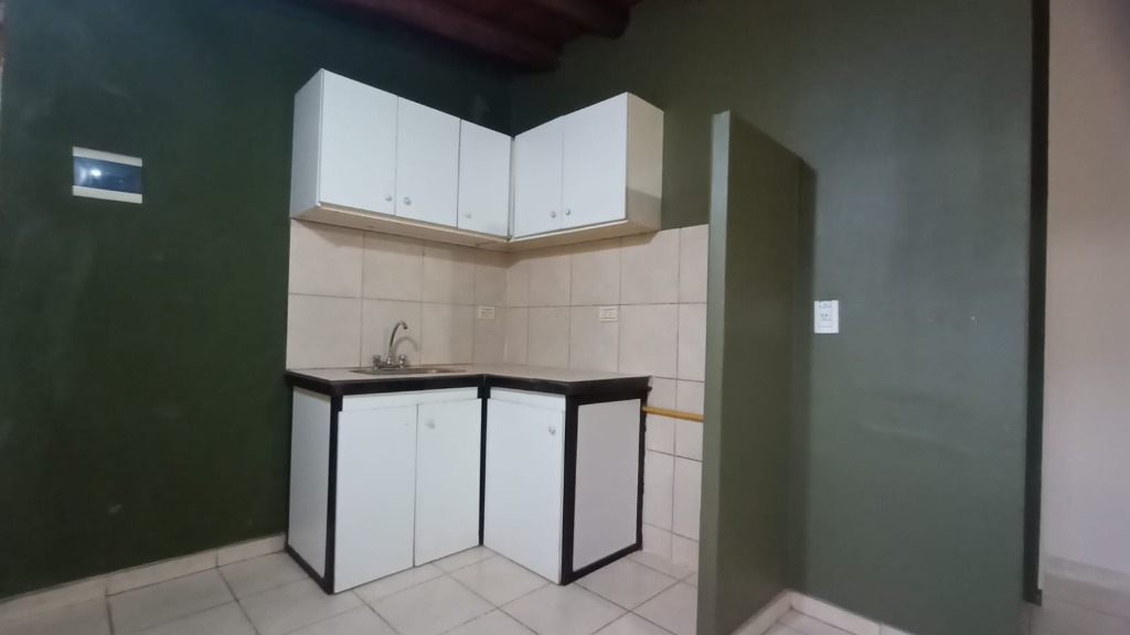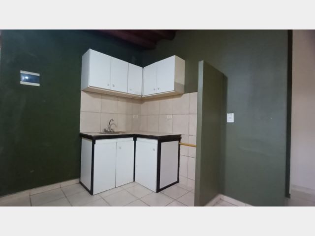 Cocina integrada con el comedor, un dormitorio amplio con placar y un baño completo.