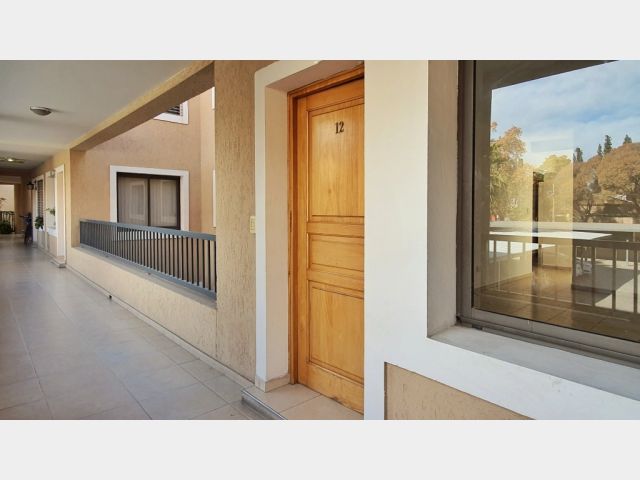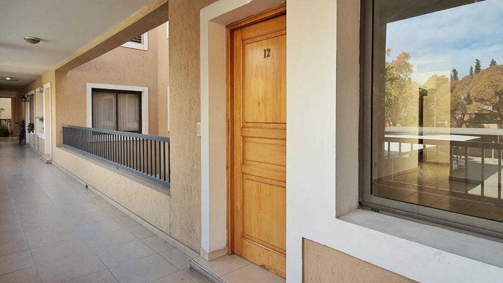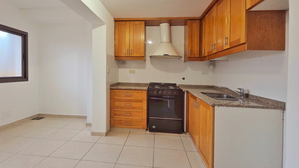 La propiedad muy luminosa se desarrolla en primer piso y cuenta con living comedor , cocina muy bien equipada con amoblamientos, baño completo, 2 dormitorios con placares, lavandería separada, balcón cerrado y cochera cubierta.