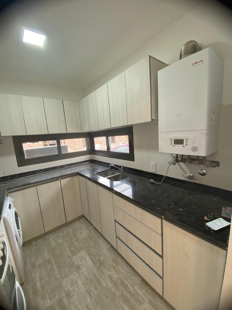 DEPARTAMENTO A ESTRENAR EN COMPLEJO CERRADO, COCINA, LIVING COMEDOR, BAÑO PRINCIPAL, 2 DORMITORIOS, 1 DE ELLOS EN SUITE. CALEFACCIÓN CENTRAL POR RADIADORES. CALDERA DUAL, EXTRACTOR, HELADERA Y LAVARROPAS. COCHERA. CERCANO A IMPORTANTES CENTROS COMERCIALES, CON COLECTIVOS EN LA PUERTA. CÓMODO, LUMINOSO, CON CORTINAS.