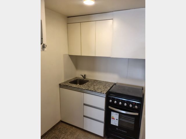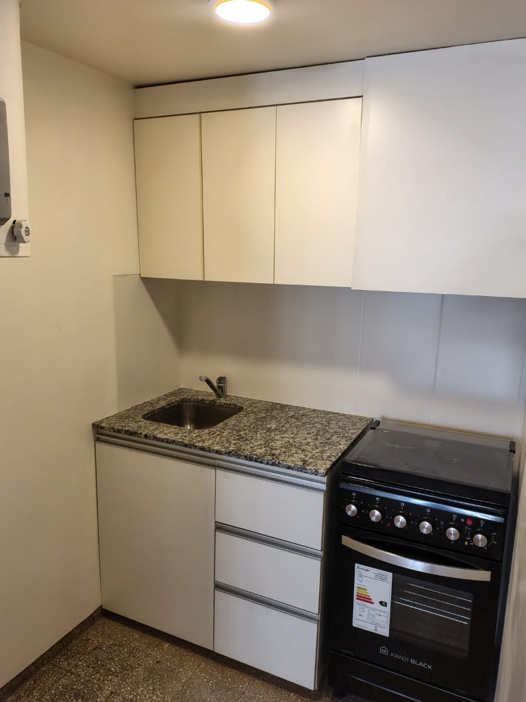 Departamento de 40 m², ubicado en primer piso, con acceso por escalera y ascensor. Cuenta con cocina independiente con lavandería y baño completo.