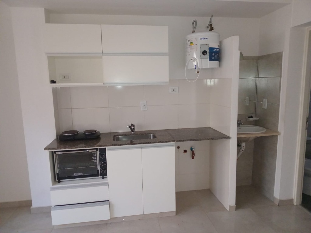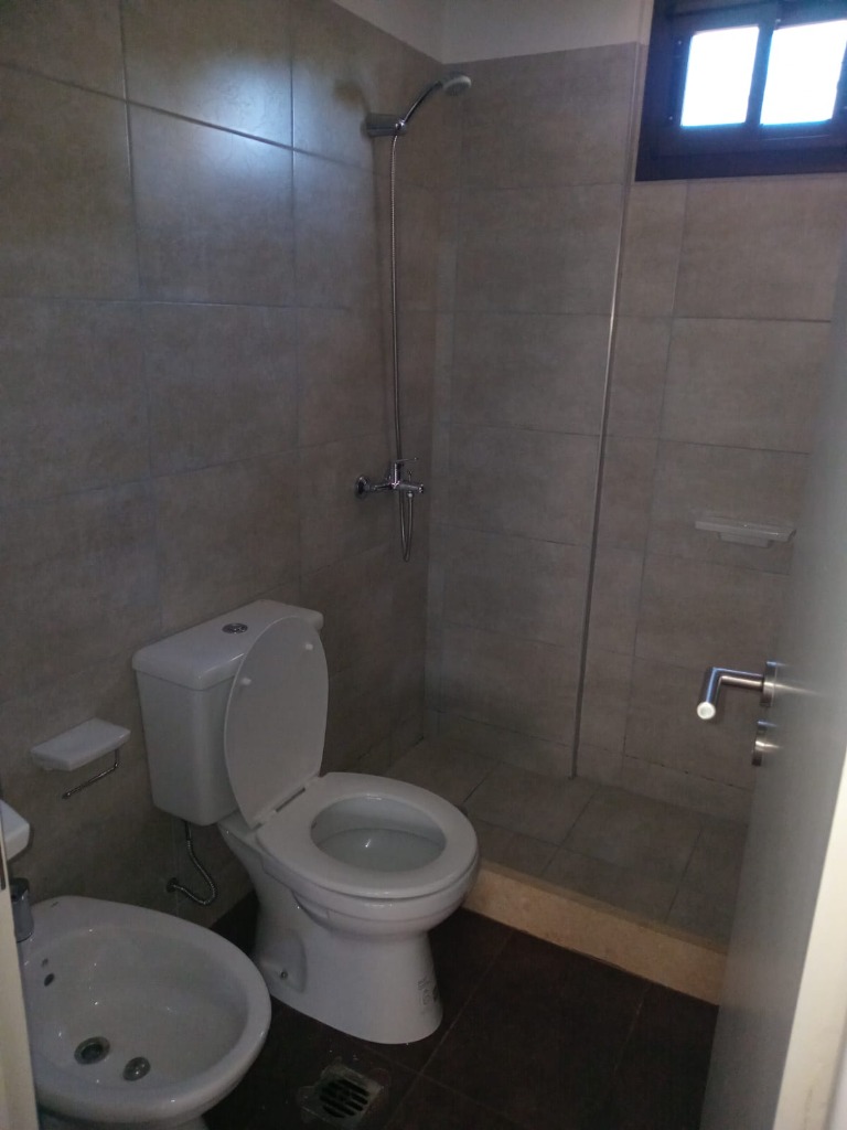 Departamento en Complejo Privado, frontal, primer piso por escaleras, 1 dormitorio con placar, baño con antebaño, living comedor con cocina integrada, cochera, terraza con tender y churrasquera. Arquitectura moderna, todo electrico, exepcional ubicacion.