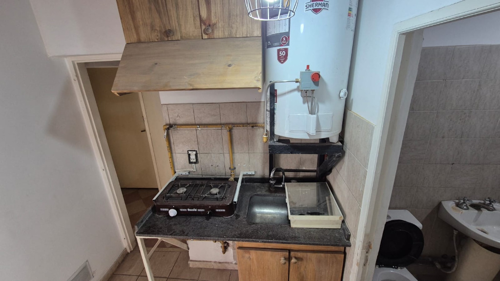 Se alquila departamento en planta alta que para llegar al segundo piso hay que subir unas escaleras. Cuenta con un dormitorio sin placar y con balcón, estar, kichinet y baño completo.