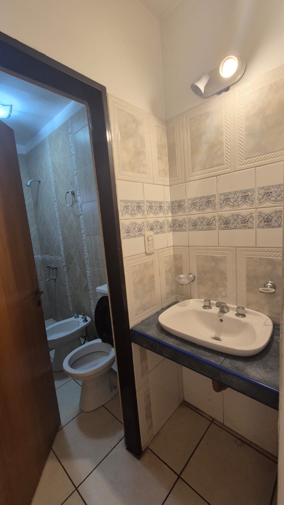 Se alquila precioso departamento en planta alta al que se llega por escaleras. Está ubicado en calle Avenida San Martín, a una cuadra y media de Capital, y a seis cuadras del Parque Central. Cuenta con dos amplios dormitorios con placares, bauleras y calefactores; antebaño y baño completo, cocina comedor sin cocina, despensa y cochera techada. Posee un espacio de uso común con churrasqueras.