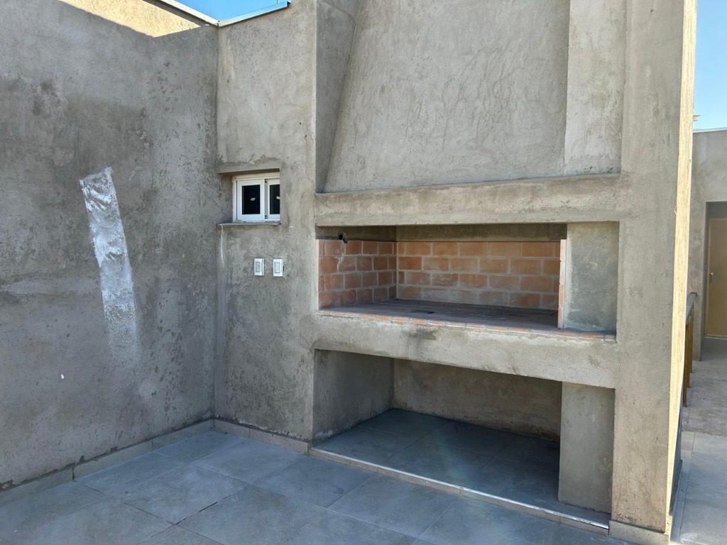 Espacio común con churrasquera y un baño.