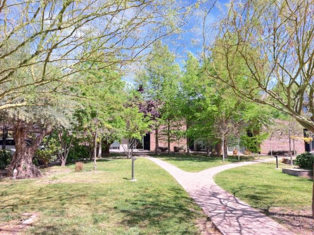 Patio parquizado con galería