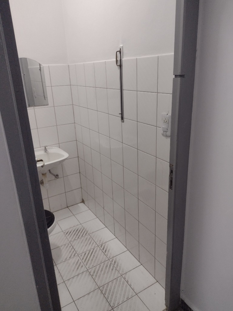 Compuesto por persiana metáliza enrrollable con blindex techos altos. pisos de granito. Impecable. Baño con lavamanos e inodoro al final del salón con ventilacion.