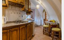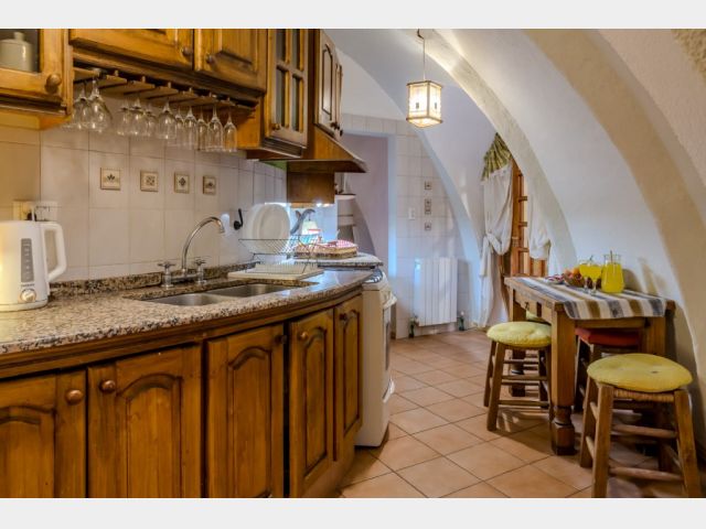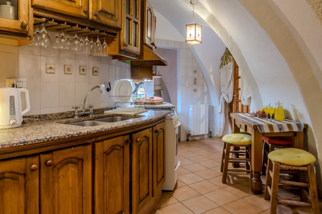 La puerta hacia la cocina,totalmente equipada con microondas, lavarropas, heladera, vajilla para 10 comenzales.