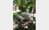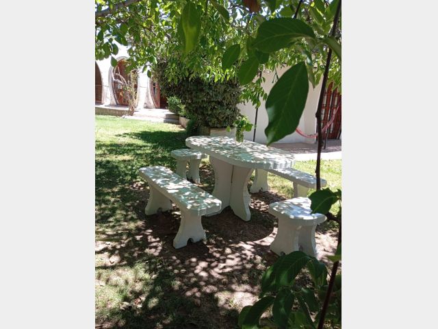 Mesa y bancos.