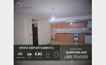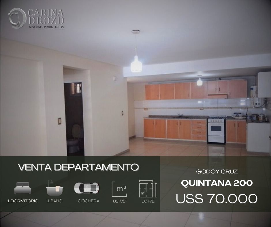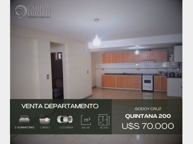 "CARINA DROZD gestiones inmobiliarias" VENDE: DEPARTAMENTOS Ubicadísimos y amplios: Calle QUINTANA 331, entre Avda. San Martín Sur y Belgrano, adyacentes Carrefour. Complejo de 35 Unidades y 36 Cocheras/ Bauleras. ENCARGADO de Edificio, 24 horas- Piso PLANTA BAJA FRONTAL y PISO 1 FRONTAL- ASCENSOR desde la Cochera. Constan de: Amplia COCINA COMEDOR: pisos porcellanatos, alacenas, bajomesadas, aparato cocina. Calefactor. 1 DORMITORIO con amplísimo Placard. Pisos porcellanatos. Calefactor. 1 BAÑO completo. El dpto. Piso 1 posee amplísimo BALCON o PATIO. Construcción tradicional, sin durlock. Rejas colocadas. ESPACIOS VERDES Comunes. COCHERAS AUTOMATIZADAS en SUBSUELO, con BAULERAS. VALOR: U$S 70.000 CON LA COCHERA INCLUIDA. ESCRITURACION INMEDIATA pero No se aceptan Créditos Hipotecarios.