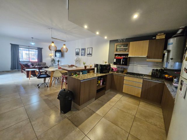 Cuenta con amplio living comedor, cocina integrada con desayunador, patio interno en el estar, 2 dormitorioscon placares, espacio de guardado y lavarropas en pasillo, 1 baño, segundo patio en los dormitorios y cochera con pergola.