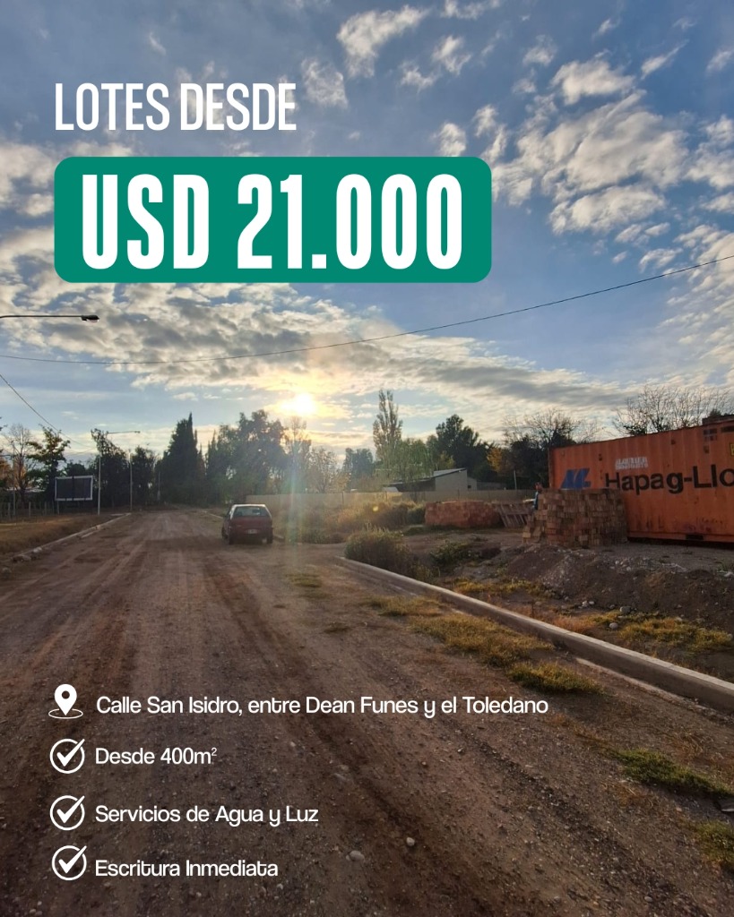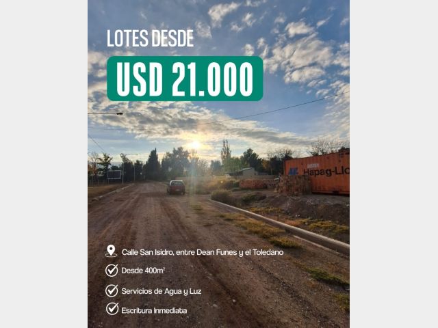 Adquirí tu lote en Calle San Isidro a metros de Avenida Dean Funes! -