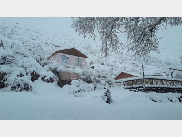 Se trata de un complejo compuesto por tres cabañas, de construcción en seco, premoldeadas, con techos de madera en su interior y chapa galvanizada en el exterior, a dos aguas, con tirantes de acero.