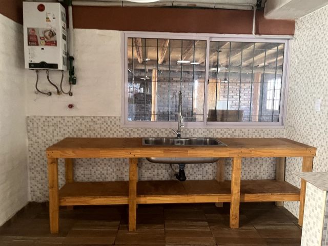 COCINA CON BAJO MESADA Y GRAN PILETA DE LAVAR. AMBIENTE ESPACIOSO. CON TECHO A GRAN ALTURA. SALON DE USOS MÚLTIPLES. CON SALAMANDRA DE HIERRO. ZONA DE LAVANDERIA Y MÁQUINAS.
