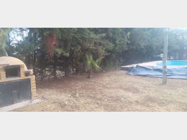 SE VENDE HERMOSA CABAÑA CON PILETA DE FIBRA , QUINCHO, CHURRASQUERA T HORNO DE BARRO, EN UN LOTE DE 1000 MT2 TODO PARQUIZADO Y RECUBIERTO DE PINOS, PALMERAS Y DEMAS ESPECIES FLORALES, FACHADA CON GRATEO Y PORTON DE MADERA, LA CABAÑA POSEE 34 MT2 CUBIERTOS DISTRIBUIDO EN 1 DORMITORIO PRINCIPAL, COCINA , BAÑO, ANTE BAÑO, DORMITORIO CHICO Y COMEDOR CON DESAYUNADOR. PUERTA DE MADERA Y VENTANAS DE MADERA CON PUERTA REJA Y TAMBIEN REJAS SOBRE LAS VENTANAS, POSEE AGUA POTABLE SUMINSTRADA POR POZO DE LA COMISION DEL BARRIO, LISTA PARA ESCRITURAR