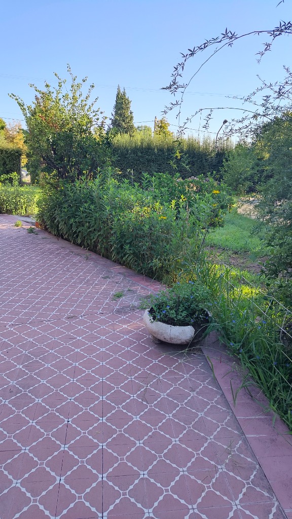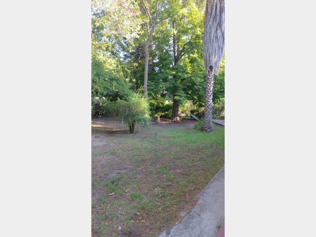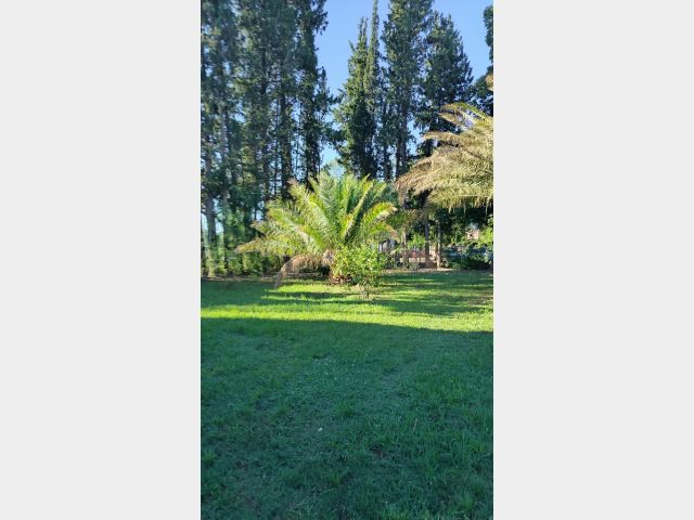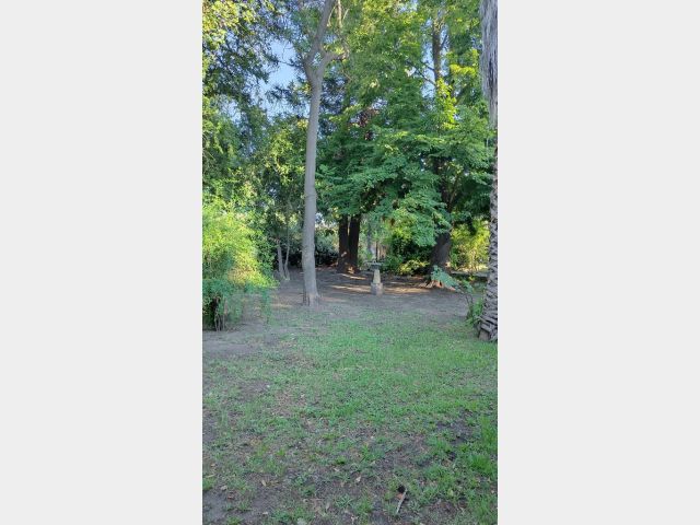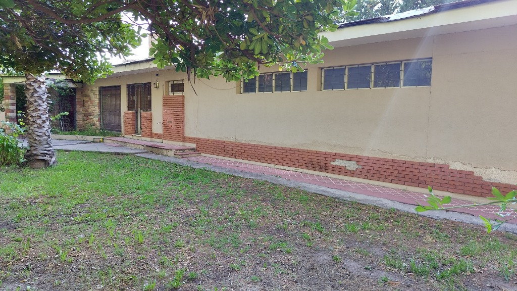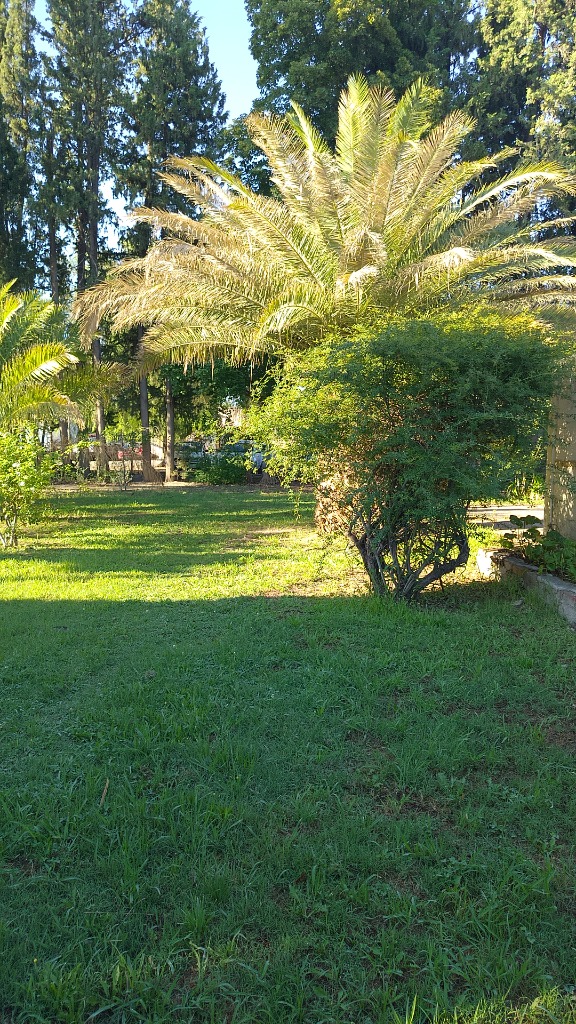 La misma Pisa sobre un Terreno totalmente Parquizado y forestado con árboles añosos, cerco verde con grateus, pinos y todo con tejido romboidal. ( Cuenta con acceso por dos calles).