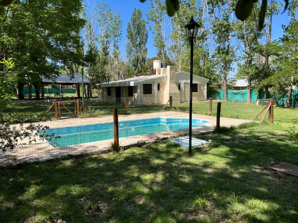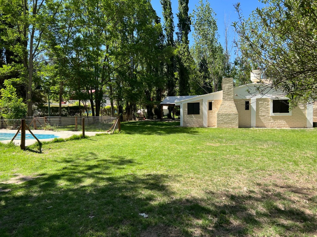 El terreno tiene 1000 m2, esta parquizado, con riego por aspersión, y una pileta.