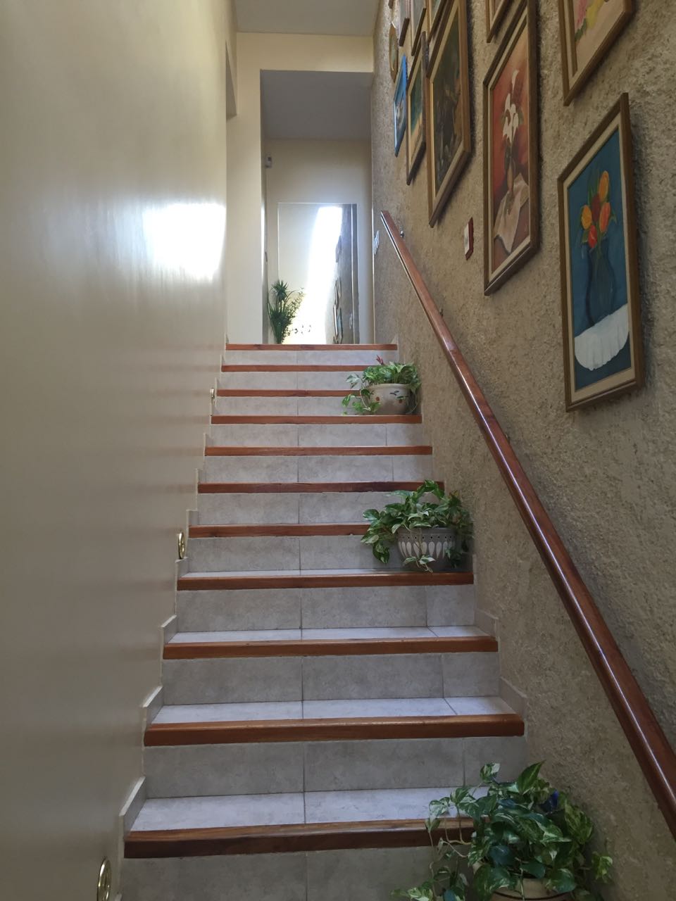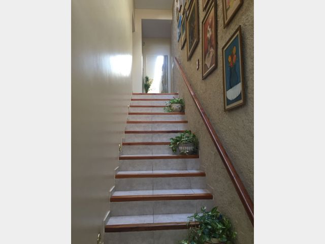 Planta alta: Escalera con luminaria, baño completo, tres dormitorios con vestidor placard y terraza.