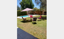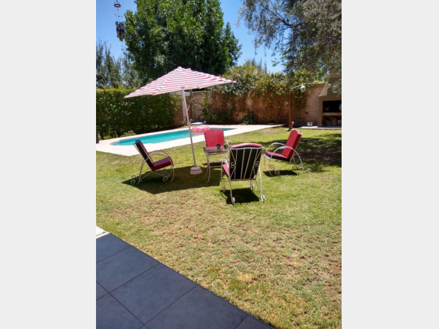 Planta baja: Hall de entrada, living comedor, cocina comedor, toilette de visita, dormitorio con vestidor, escritorio con placard, lavandería independiente, patio interno. Piscina y baño completo (afuera), jardín de 250 m2 con churrasquera y luminarias, jardín en todo su frente. Cochera triple.