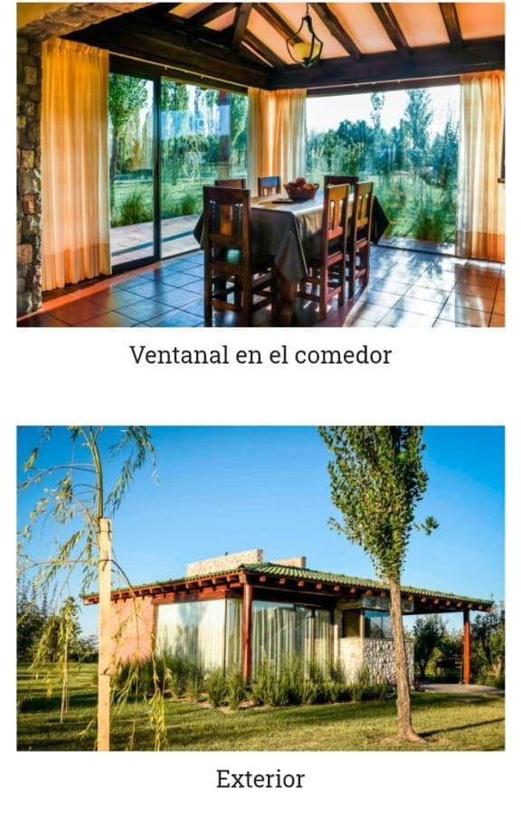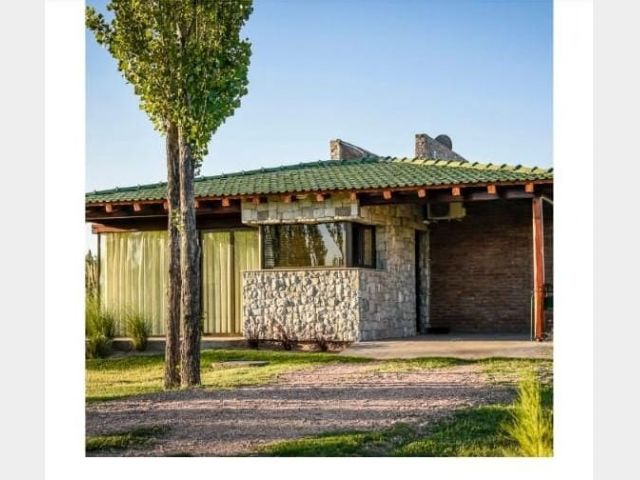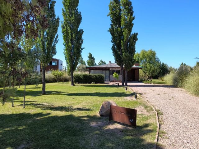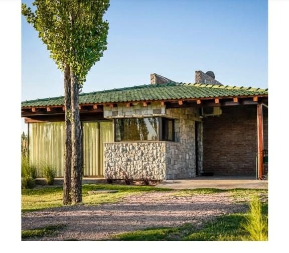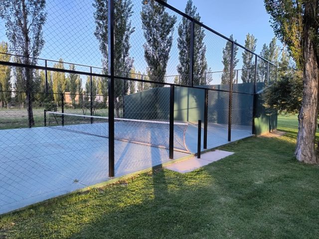 La finca tiene 6 hectáreas de parque, arroyo, piscina al aire libre con borde infinito, bar de temporada, cancha de fútbol, cancha de pádel, aro de basquet y juegos infantiles.