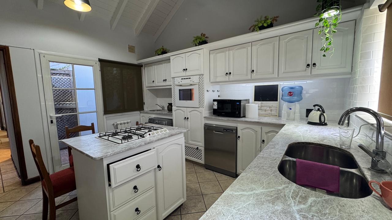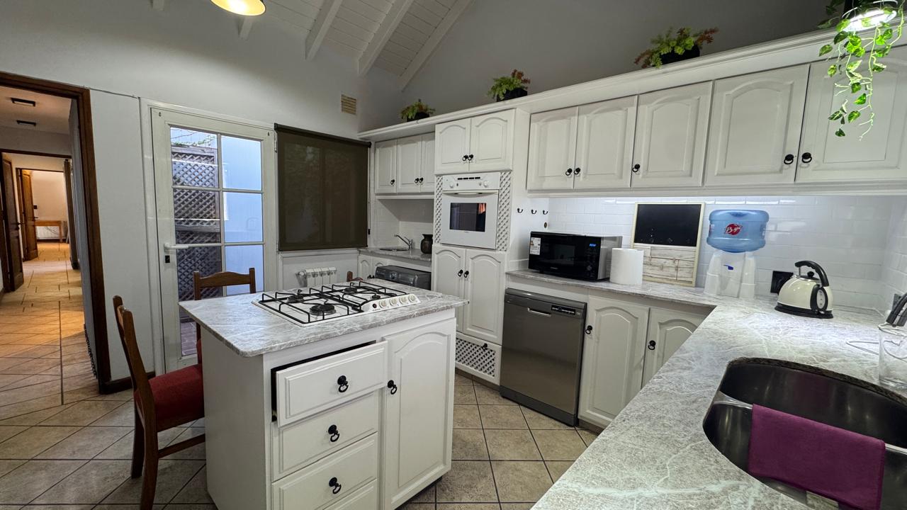 Al ingresar, nos recibe un luminoso living comedor con vistas al jardín, seguido de una cocina equipada con amoblamientos de excelente calidad y un desayunador. La casa cuenta con dos dormitorios con ventanales al jardín y placares de gran calidad, dos baños completos y una habitación principal con vestidor y baño en suite. Además, en planta alta encontramos otra habitación en suite.