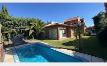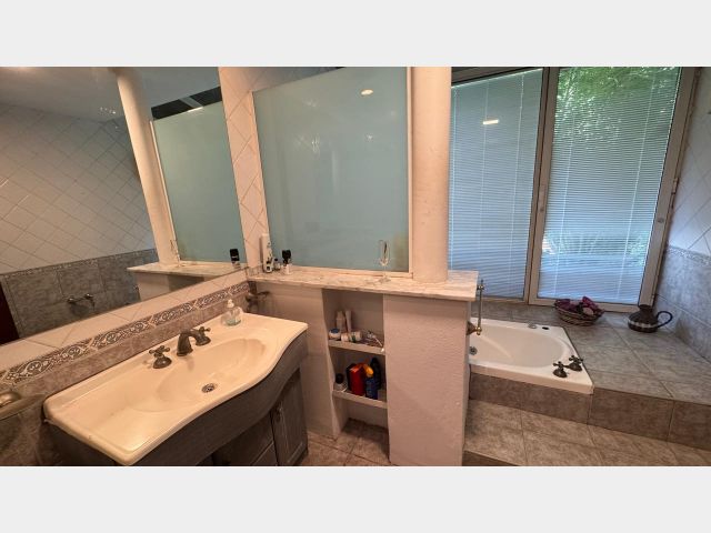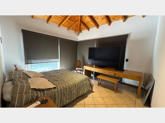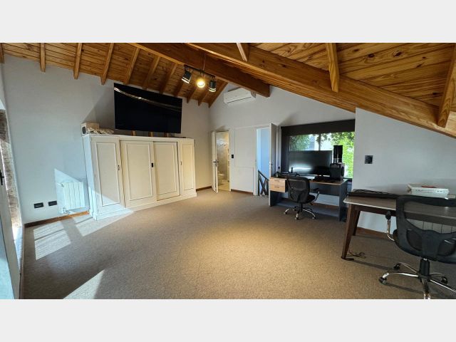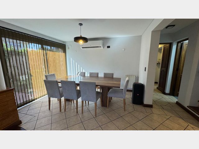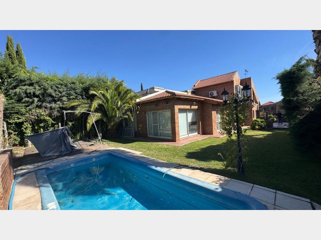 En el exterior, un hermoso jardín con riego por aspersión, una piscina con todos sus implementos y una cochera doble con portón automático. La propiedad también cuenta con calefacción central por radiadores, aire acondicionado en todos los ambientes, cortinas black out en toda la casa y más.