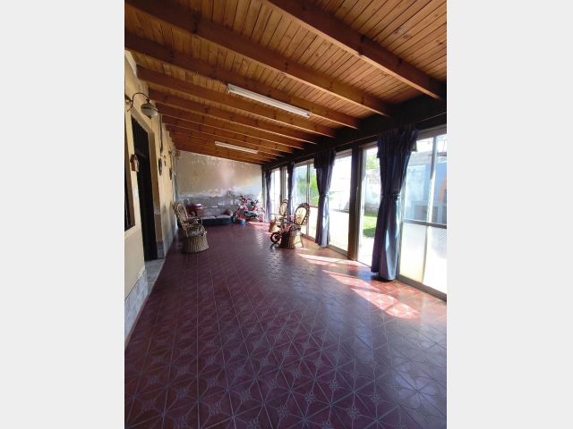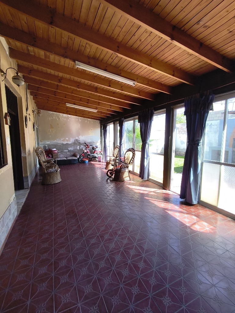 Posee tres habitaciones, un salon, baño, cocina comedor, cochera completamente cerrada y patio parquizado con churrasquera.