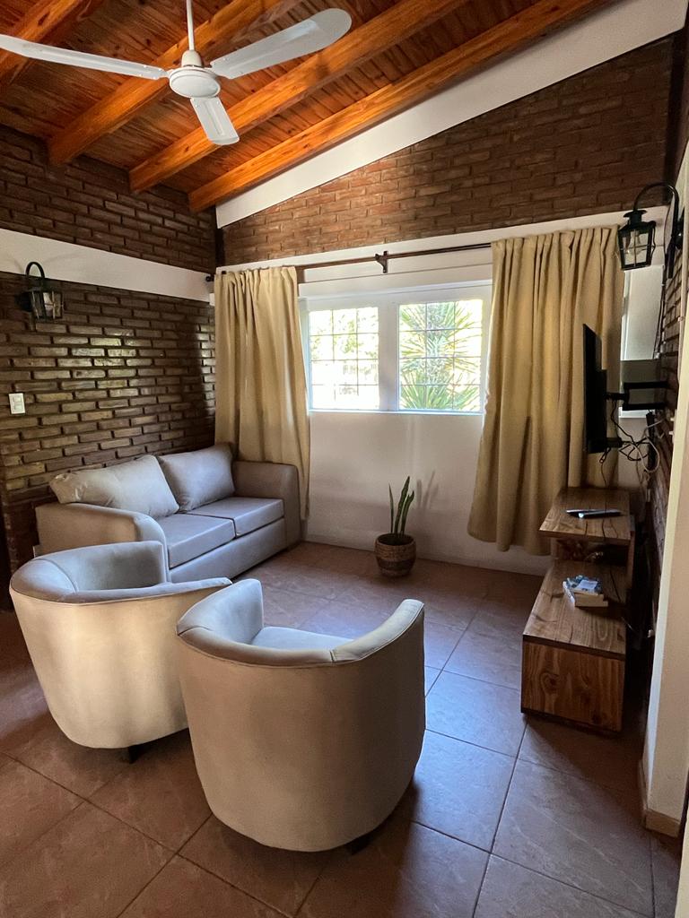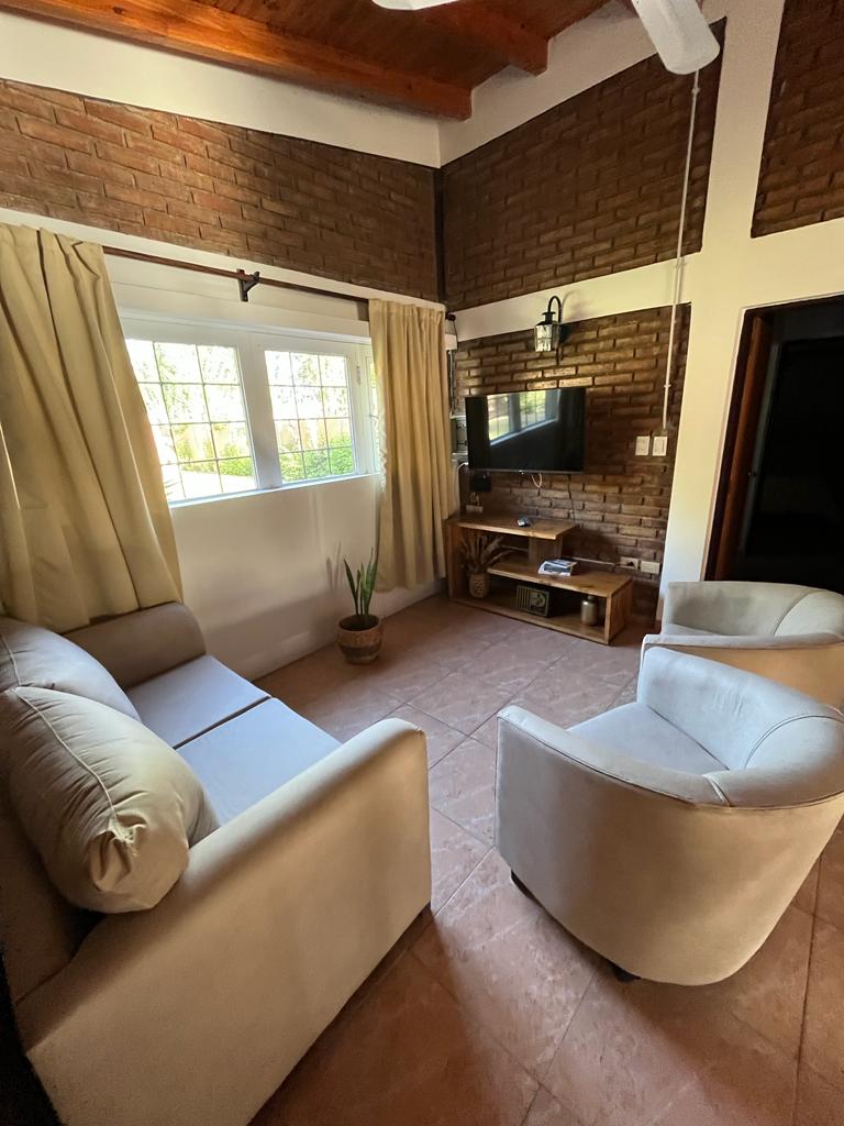 Detalle: La propiedad tiene una extensión de 2300 metros de terreno, una superficie cubierta de 130 metros, con dos habitaciones amplias, una de ellas con cama matrimonial y la otra con dos camas individuales. Cocina - Comedor diario, un baño con salida al exterior de la vivienda (para utilizar en la época de pileta) una amplia galería techada, parrillero con horno. Pileta de material de 10 x 5 con cerámico en muy buen estado. escalinatas en vértice derecho, tiene una profundidad que va de 1 metro aprox a 2,50 aprox. Sala de maquinas. Completamente equipada.