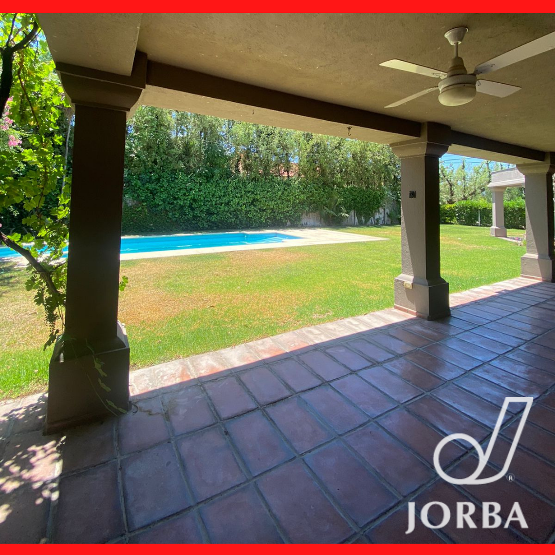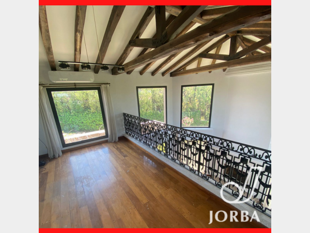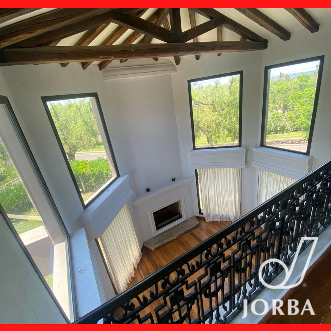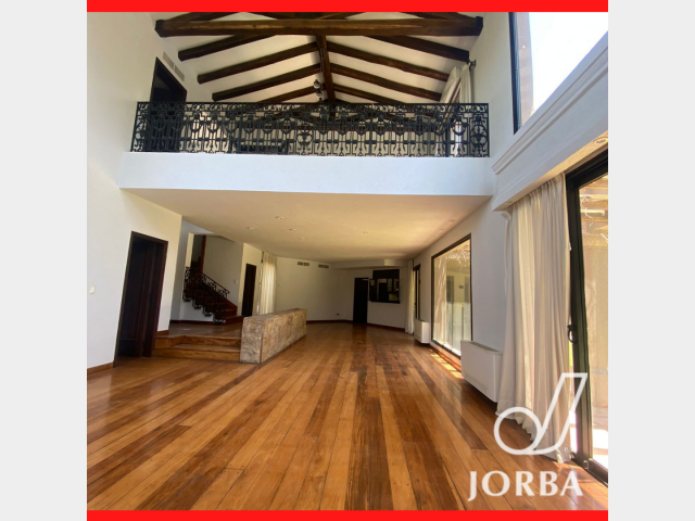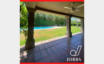 En Planta Baja dispone de una Gran Living - Comedor con hogar a Leña, pisos entablonados, lustrados, amplios ventanales tipo paño fijo, muy luminoso, doble altura. Baño toilett. Amplia Cocina con amoblamiento de bajomesada y alacenas. Lavandería. Cochera techada para 3 vehículos, Baño completo con vestidor para Piscina. Amplio Jardín Parquizado con Pisicina con Jacuzzi.- Baño completo de Servicio Separado. Amplia Galeria con Churrasquera, de Doble uso, Quincho y Galeria.