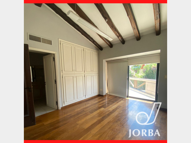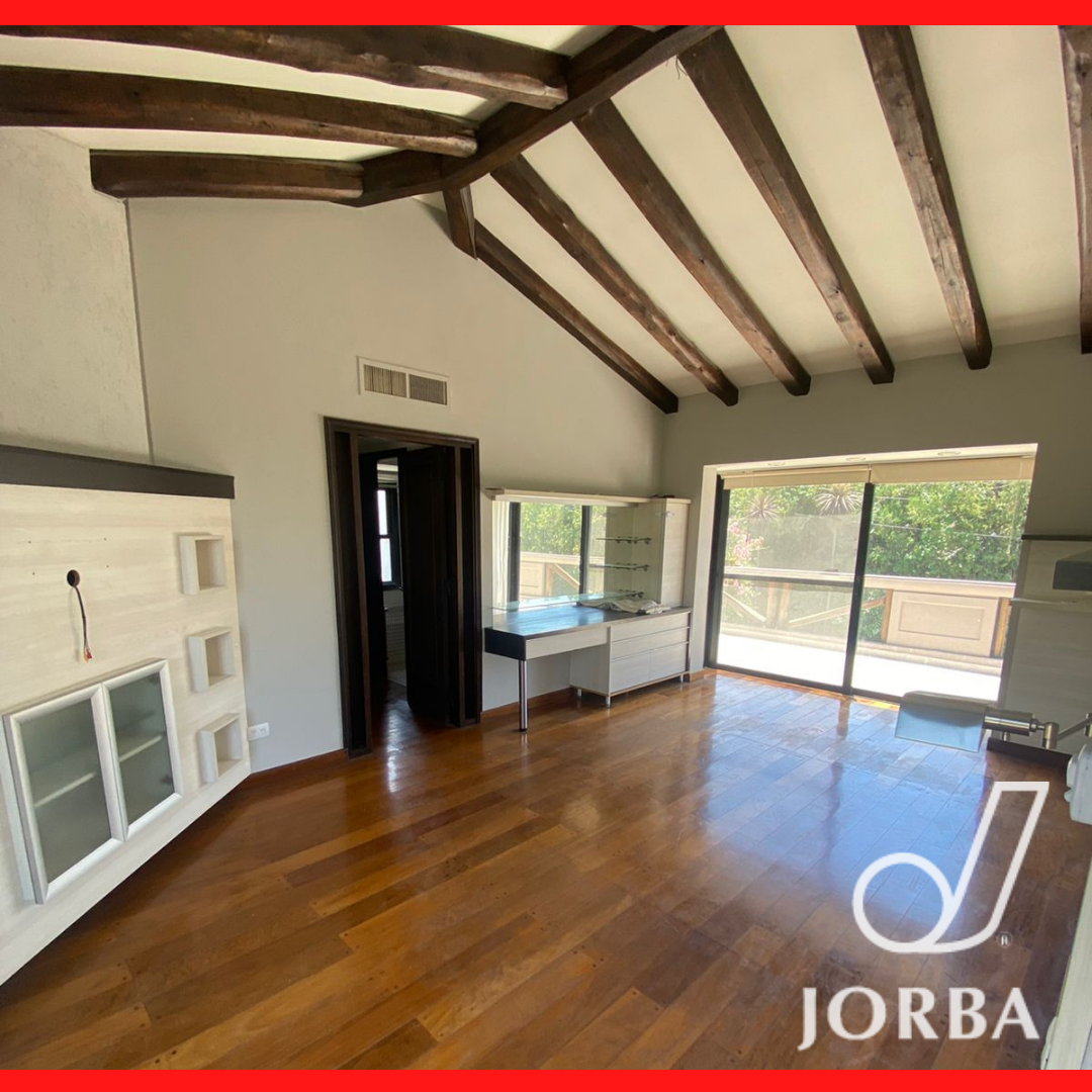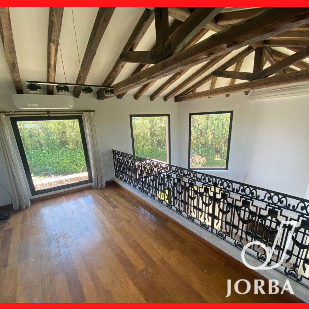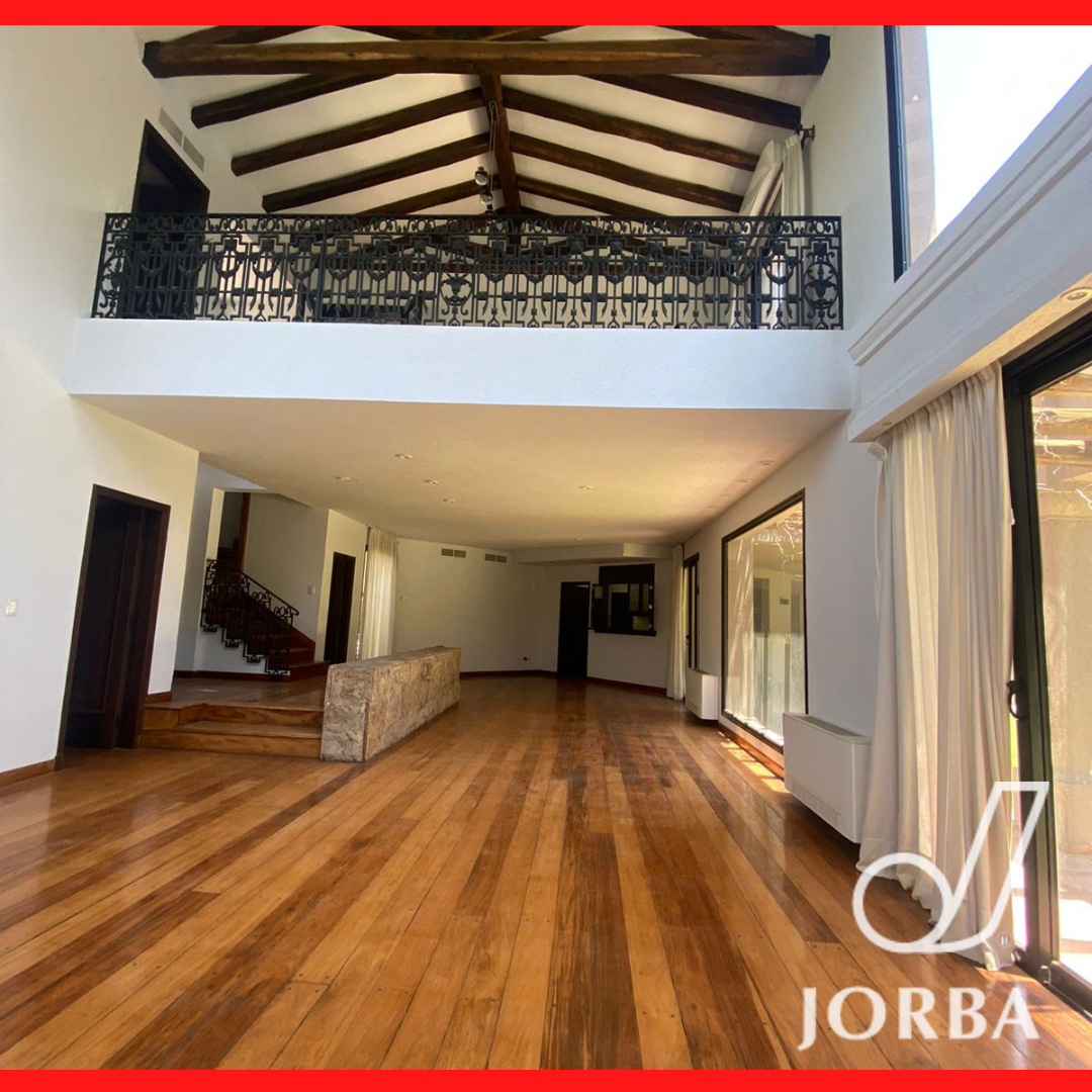 En Planta Baja dispone de una Gran Living - Comedor con hogar a Leña, pisos entablonados, lustrados, amplios ventanales tipo paño fijo, muy luminoso, doble altura. Baño toilett. Amplia Cocina con amoblamiento de bajomesada y alacenas. Lavandería. Cochera techada para 3 vehículos, Baño completo con vestidor para Piscina. Amplio Jardín Parquizado con Pisicina con Jacuzzi.- Baño completo de Servicio Separado. Amplia Galeria con Churrasquera, de Doble uso, Quincho y Galeria.