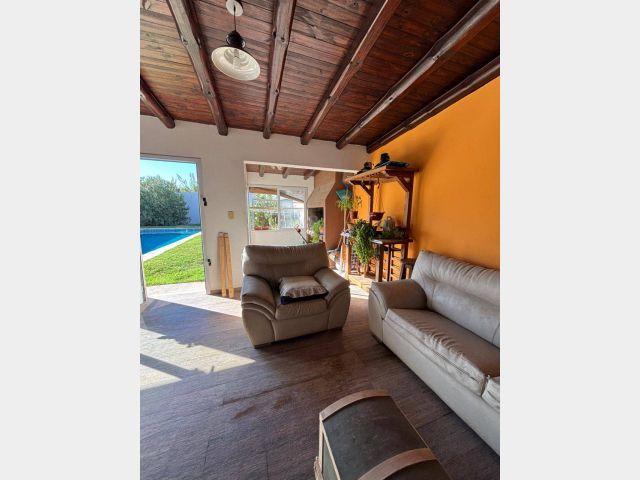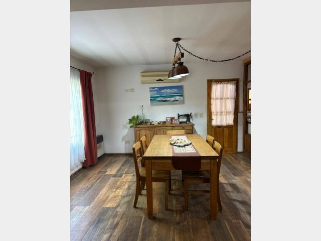 La propiedad, con una antigüedad de 10 años, se encuentra en excelentes condiciones y ofrece tres cocheras cubiertas, proporcionando la comodidad que requieren los propietarios de múltiples vehículos. Su orientación oeste permite disfrutar de una luminosidad natural en los espacios, creando un ambiente acogedor y cálido en el interior. Además, cuenta con servicios esenciales como agua corriente, gas natural, luz y desagüe cloacal, lo que garantiza una calidad de vida óptima en un barrio abierto y accesible.