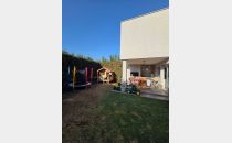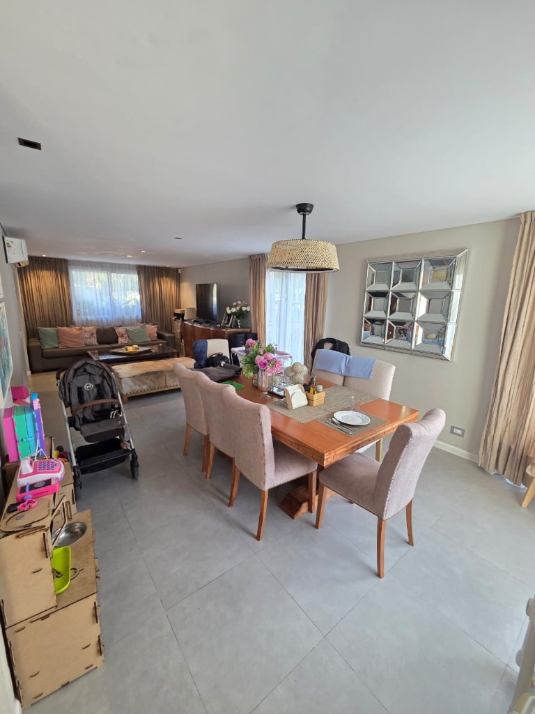 En planta baja se desarrolla un amplio y luminoso living comedor, cocina con bajo mesada y alacenas. Baño de visita, amplia galería con parrilla, cochera doble pasante. Jardin.