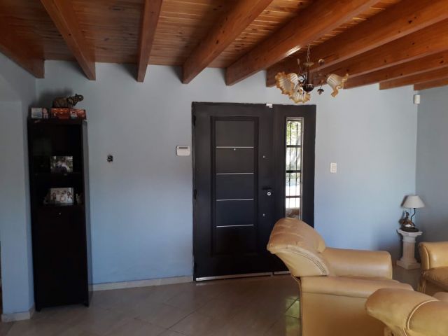 ingreso al inmueble por tres sectores puerta principal, cochera y porch lateral derecha ambas entradas conectan con living grande, Cocina, Comedor, 3 Dormitorios amplios y luminosos, 2 Baños, depósito lavandería, patio mediano pàrquizado, cochera techada y cubierta con churrasquera,