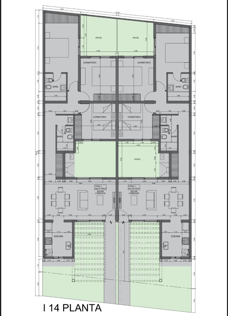• Conjunto de dos casas espejadas en lote de 300 m².