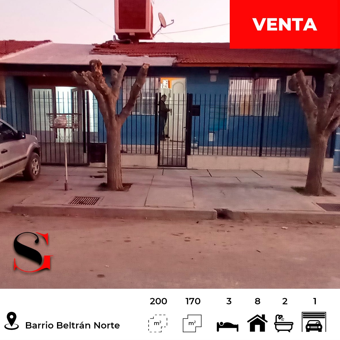 El inmueble asienta sobre una superficie total de 200 mts2 y una superficie cubierta de 170 mts2.