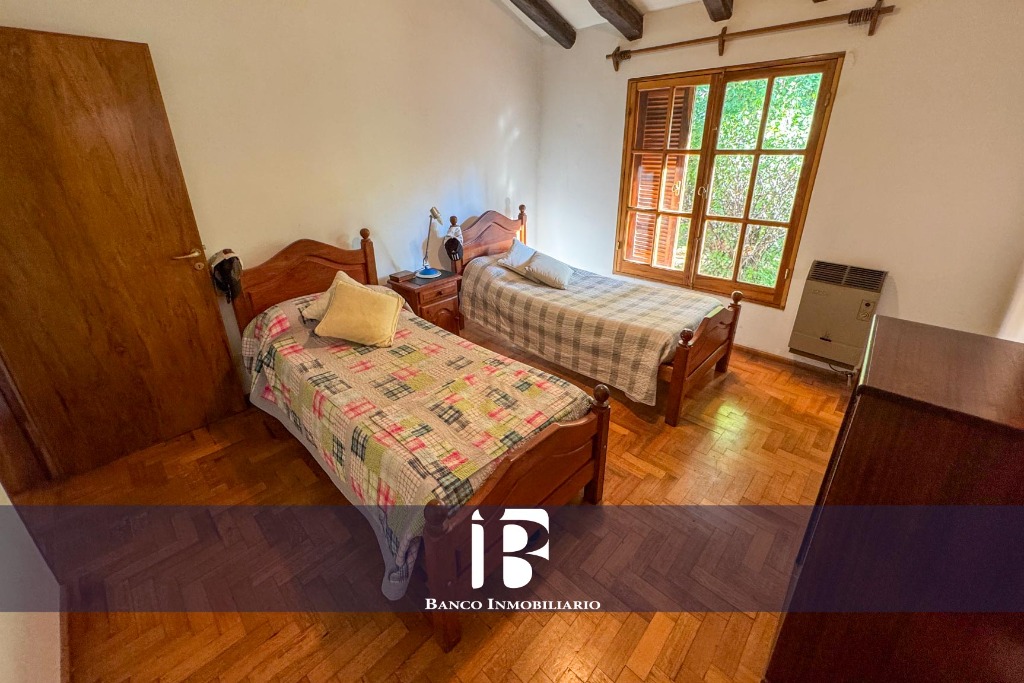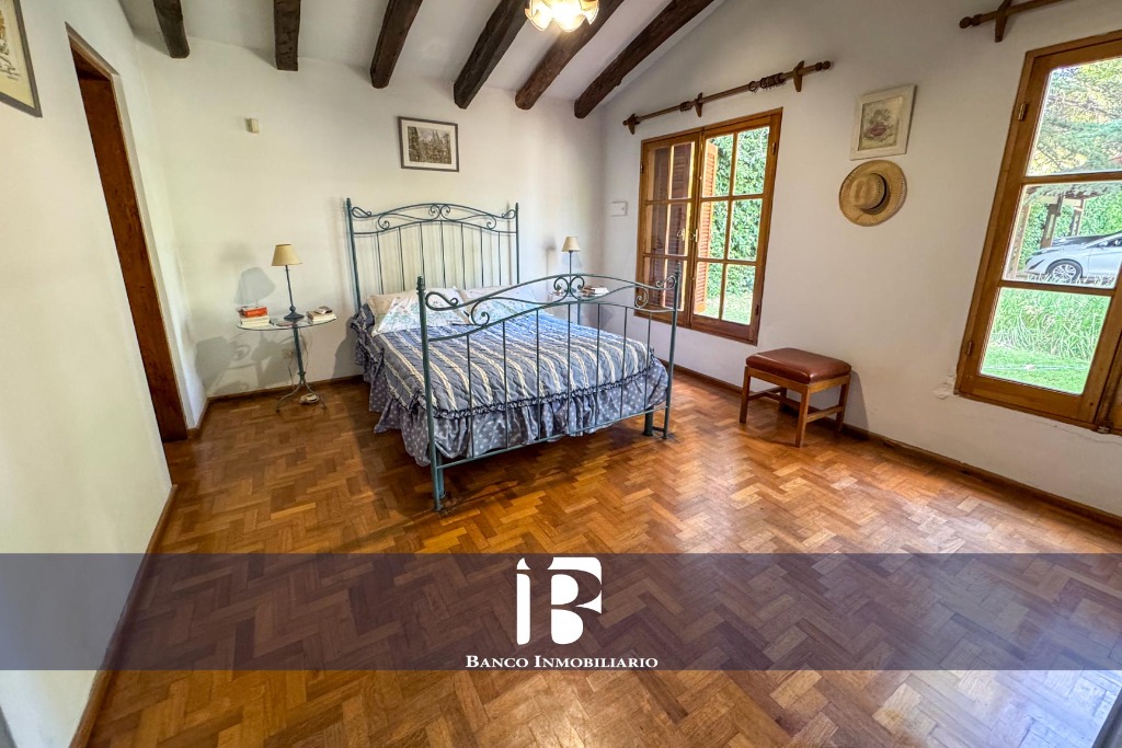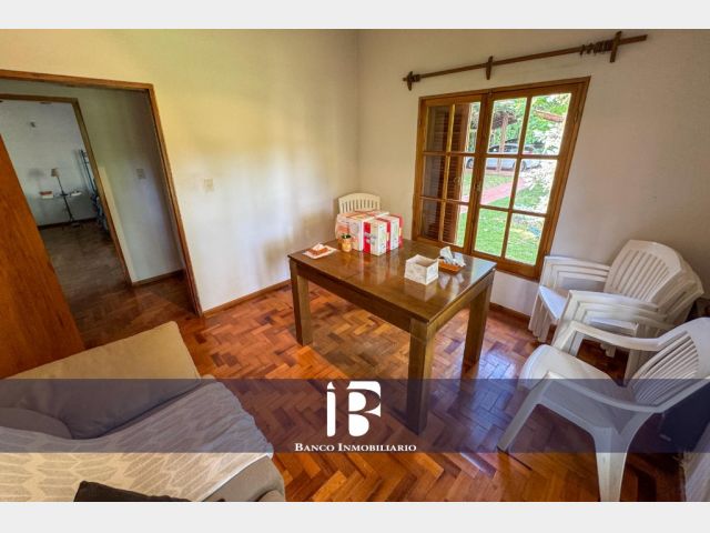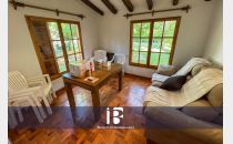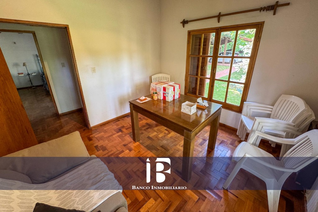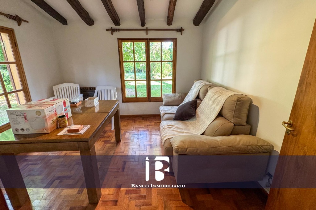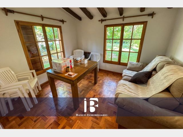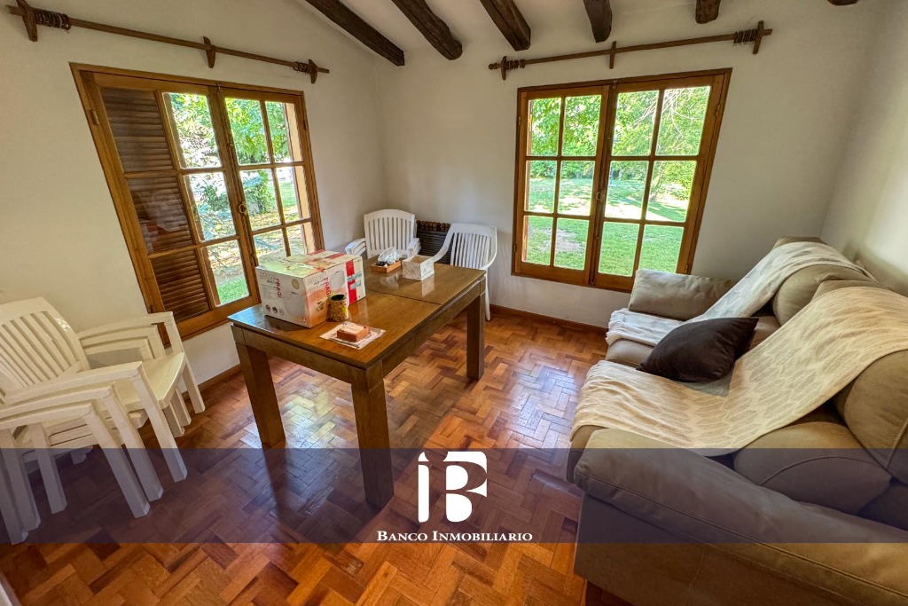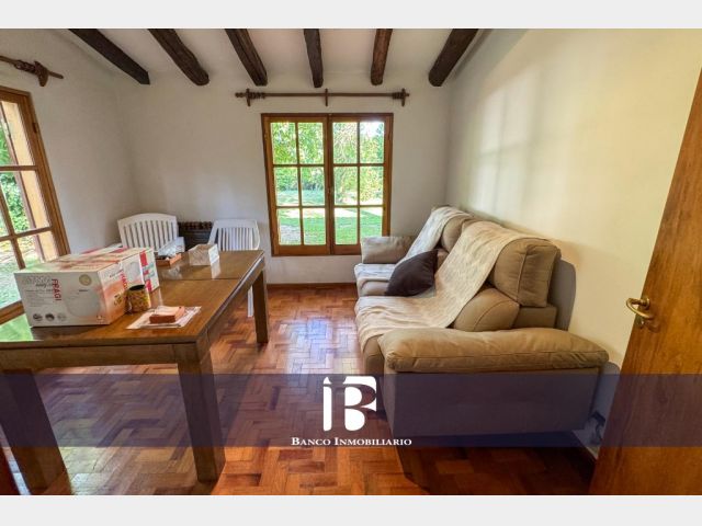 Amplio Living-Comedor con piso parquet y hogar a leña. El living-comedor resulta muy luminoso dado que cuenta con ventanales hacia el jardín.