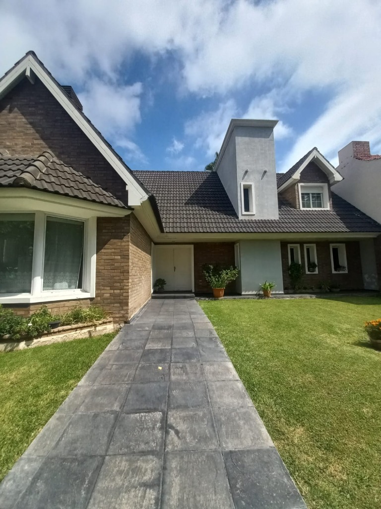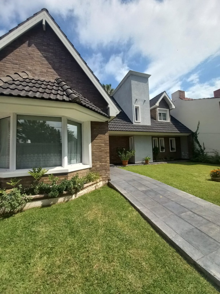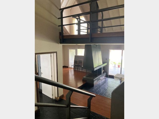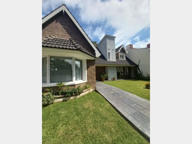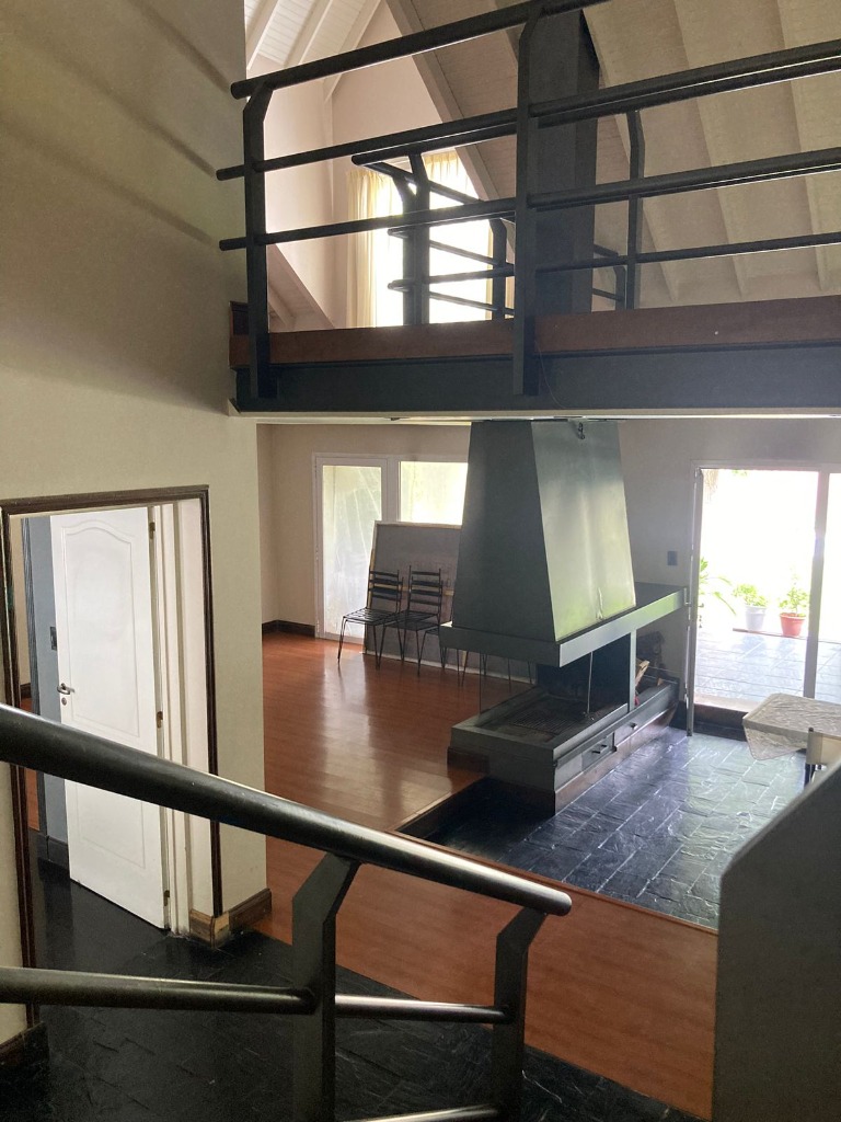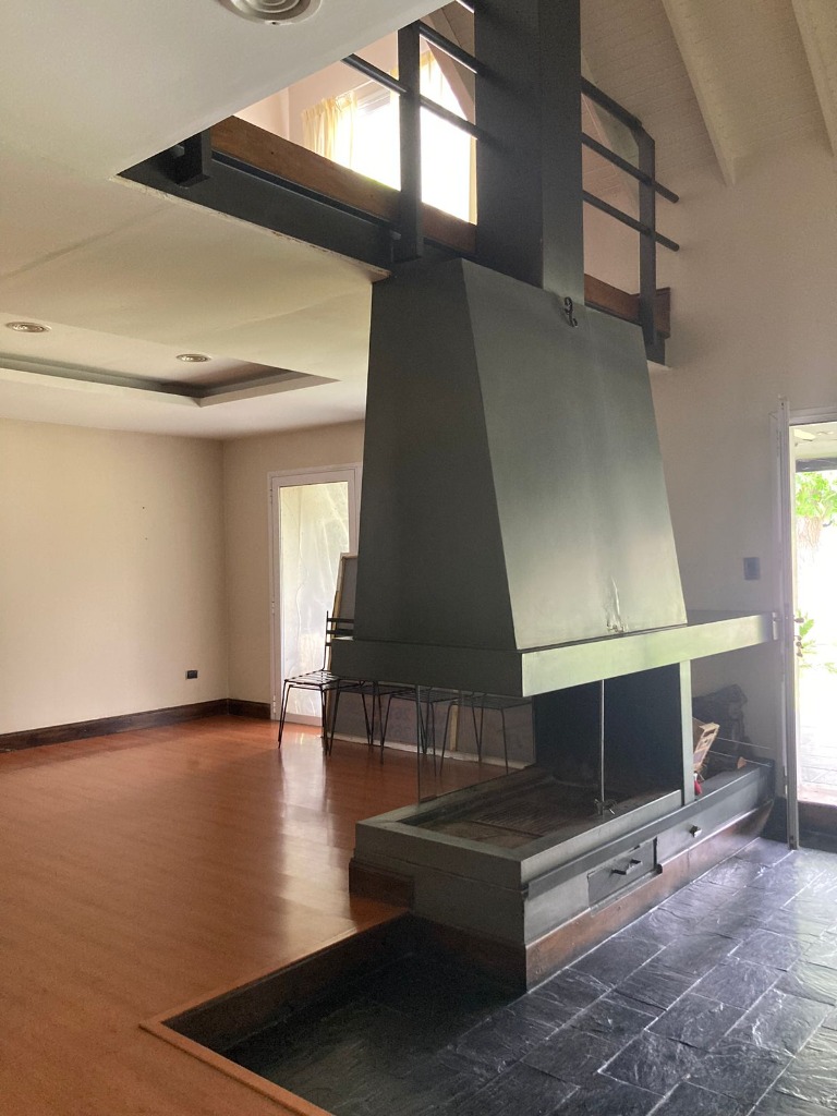 La vivienda principal es un chalet estilo nórdico, con un juego de techos a dos aguas, interiores amplios y espaciosos donde se encuentra una gran cocina estar comedor con mobiliario laqueado de color blanco, mesada en granito natural color negro, posee una imponente isla con campana colgante. Pisos porcelanato, placares de guarda. Amplios ventanales. Luego se encuentra un gran living comedor con una estufa chimenea, dividiendo el ambiente quedando los lugares bien definidos. Se destaca mucho diseño de juegos con metal, madera y porcelanato, y su gran techo con mucha inclinación y altura. En la planta baja tiene la habitación principal en suite con un gran vestidor, como detalle principal tiene estufa chimenea, y cortina eléctrica en su puerta ventana.