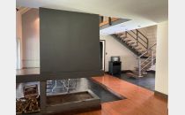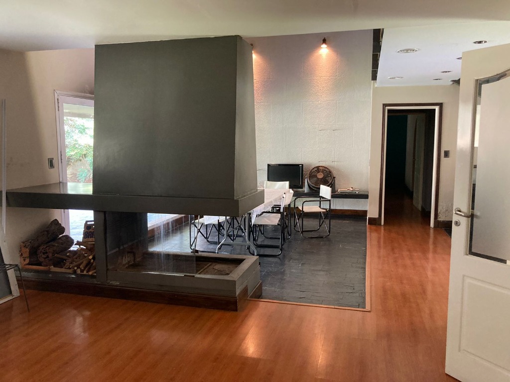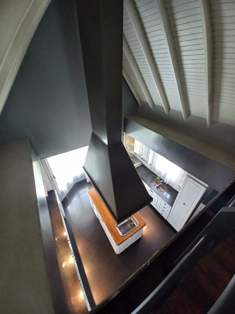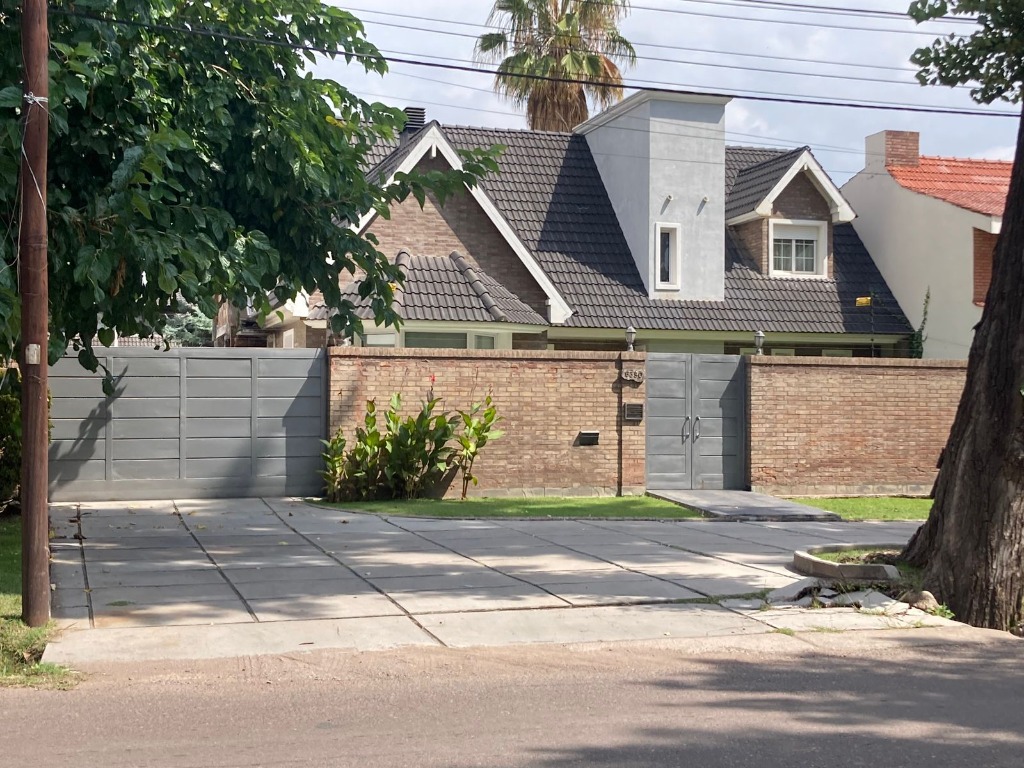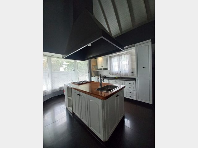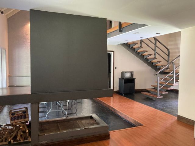 La vivienda principal es un chalet estilo nórdico, con un juego de techos a dos aguas, interiores amplios y espaciosos donde se encuentra una gran cocina estar comedor con mobiliario laqueado de color blanco, mesada en granito natural color negro, posee una imponente isla con campana colgante. Pisos porcelanato, placares de guarda. Amplios ventanales. Luego se encuentra un gran living comedor con una estufa chimenea, dividiendo el ambiente quedando los lugares bien definidos. Se destaca mucho diseño de juegos con metal, madera y porcelanato, y su gran techo con mucha inclinación y altura. En la planta baja tiene la habitación principal en suite con un gran vestidor, como detalle principal tiene estufa chimenea, y cortina eléctrica en su puerta ventana.
