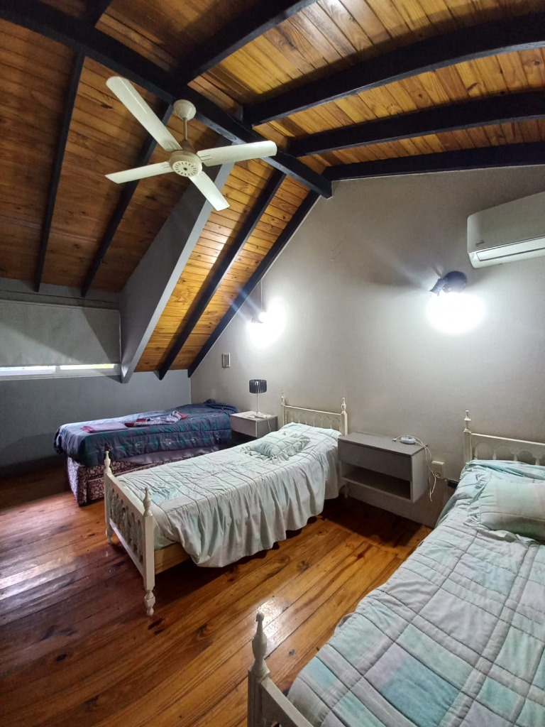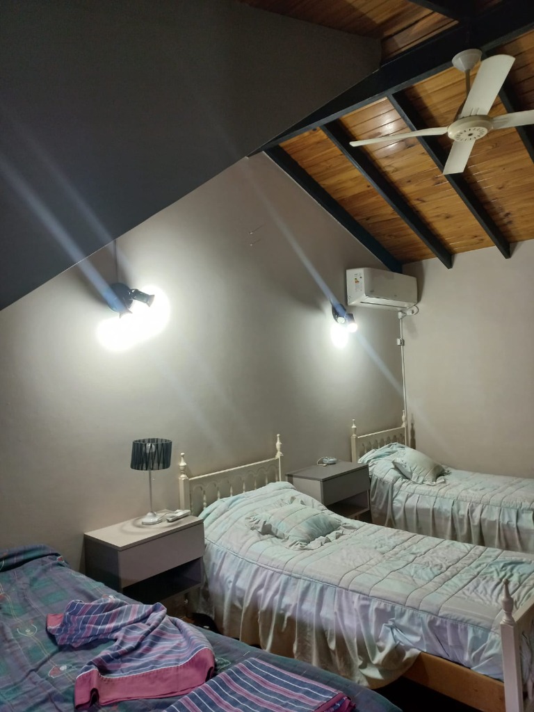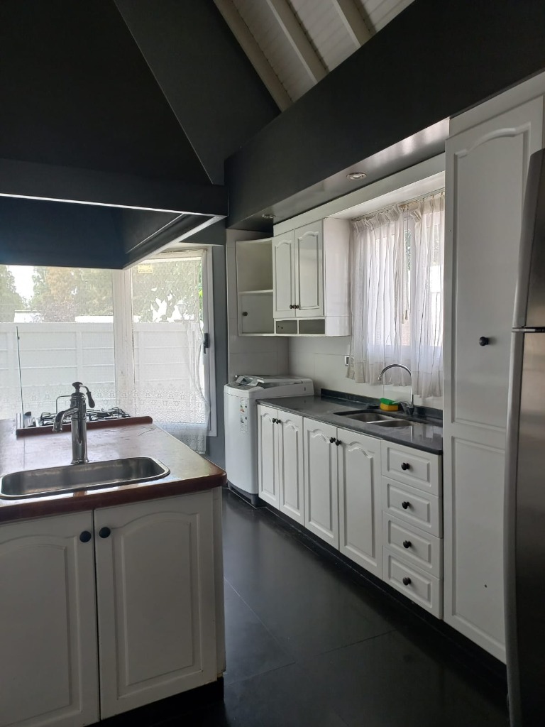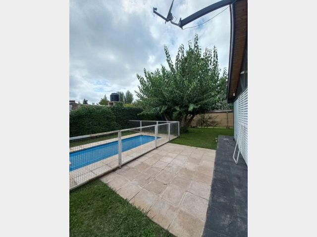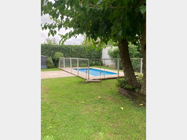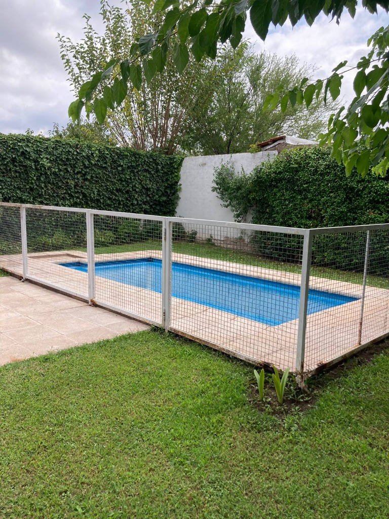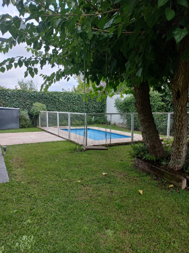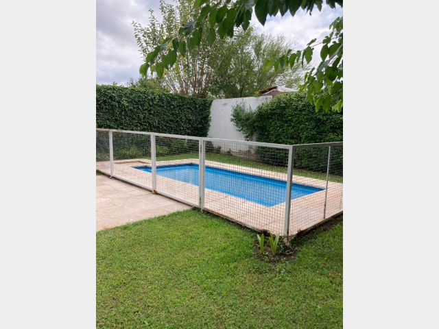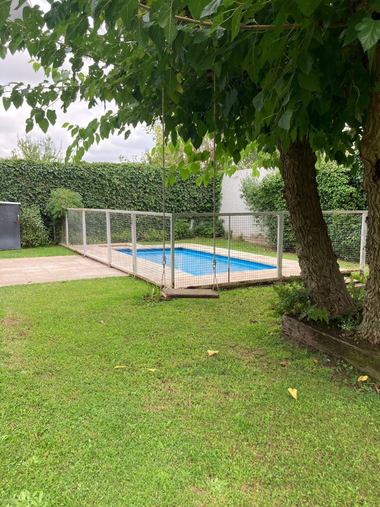 Casa Secundaria. Posee tres dormitorios uno en planta baja, todos con sus respectivos placares. Cocina: independiente con muebles de cocina en melamina, con bajo mesada y alacena. Estar living comedor integrado con ventanales quedan al jardín. Posee piscina con cerco para seguridad.